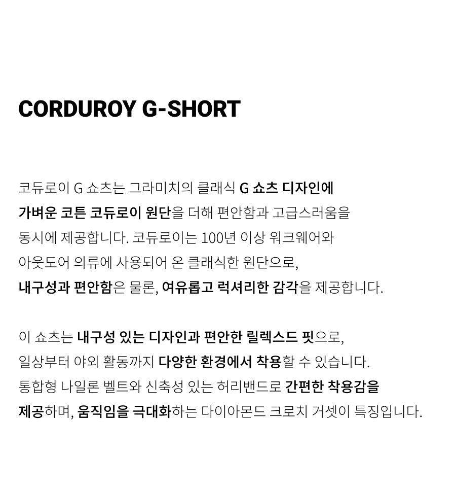 그라미치 코듀로이 G 쇼츠 베이지