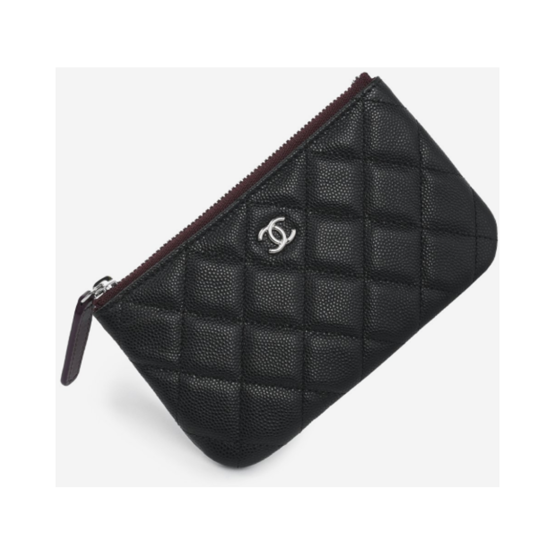 샤넬 클래식 미니 파우치 그레인드 카프스킨 & 실버 메탈 블랙