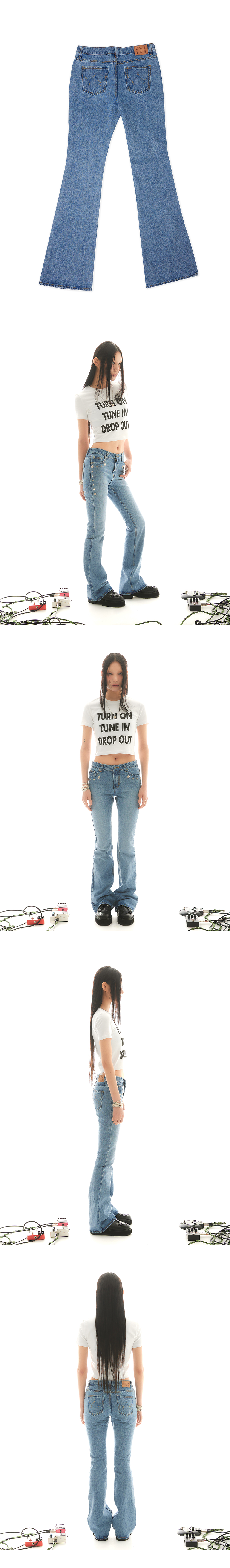 (W) smallstupidtunes Stud Bootcut Denim Pants Light Blue