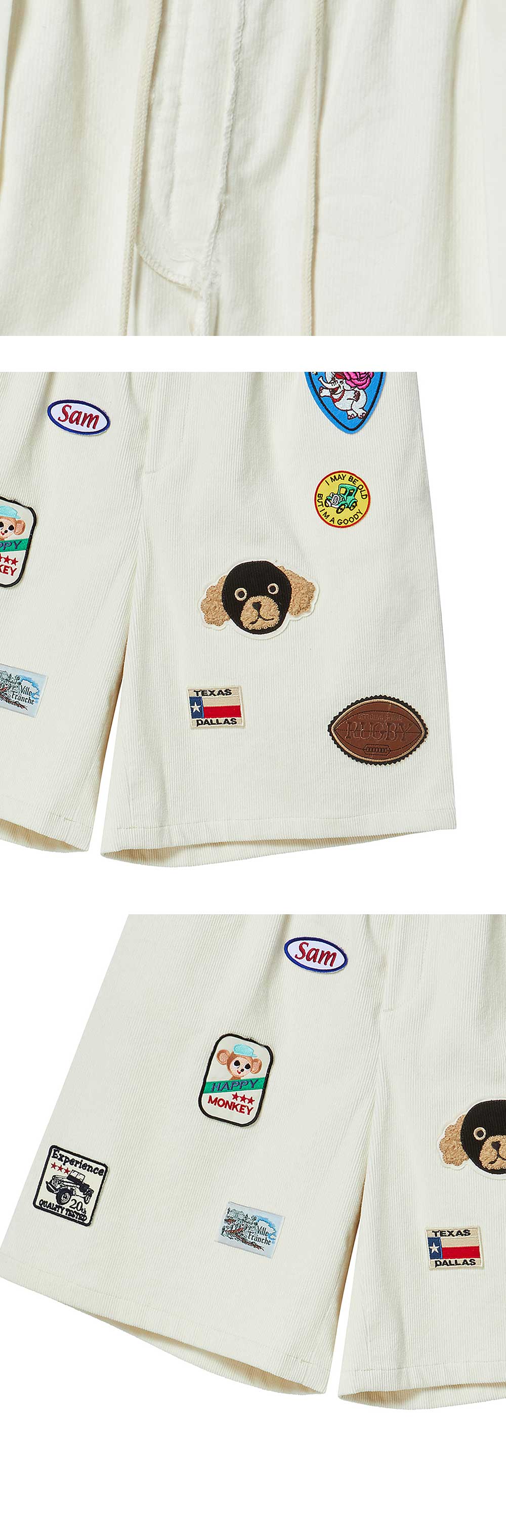 엔 아카이브 빈티지 와펜 디테일 코듀로이 하프 팬츠 아이보리