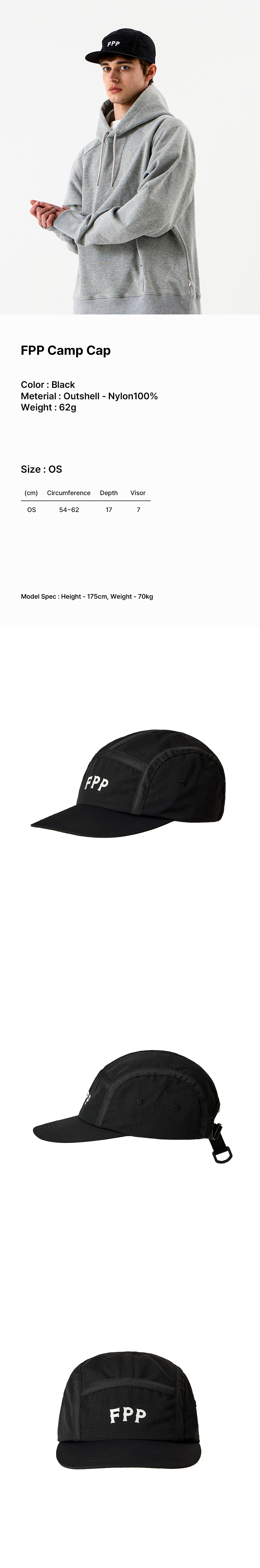 모자 내부 디테일을 외부로 표현 모자 전면 외부 FPP 로고 프린트 고밀도로 방직된 립스탑 원단 사용 대부분의 두상 크기에 적합한 사이즈 웹 락과 D 링을 사용한 사이즈 비조