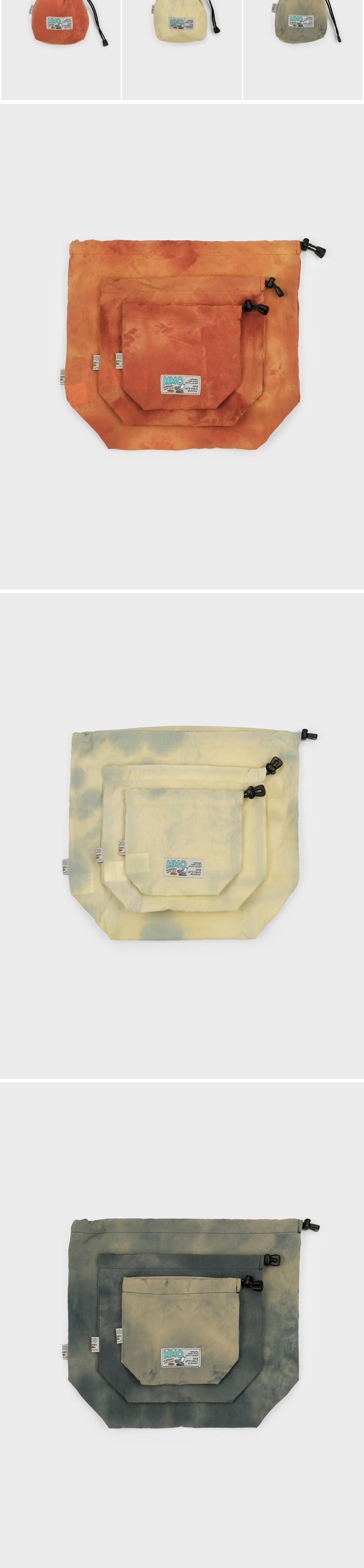 *나일론 원단에 일정한 형식을 두지않고 자유롭게 타이다이 염색을 진행하여 제작한 특성상 상세이미지와 판매되는 모든 제품의 컬러(무늬)가 다른 점 확인 후 구매 부탁드립니다. (해당 사유는 불량이 아님으로 제품 특성상 무상 교환 및 반품이 어렵습니다.) 에메모만의 이야기로 풀어낸 ‘똑같은 컬러가 없는, 단 하나뿐인 나만의 타이다이 파우치’ - 발수 가공 처리로 가벼운 생활방수 가능 - 나일론 특유의 바스락 거림과 질감은 매트하지만 촉감은 부드러운 원단 - 일상과 여행에서 사이즈가 맞는 작거나 큰 소품들을 담거나 가벼운 손가방으로도 사용하기 좋음 - 에메모 사각 라벨 포인트