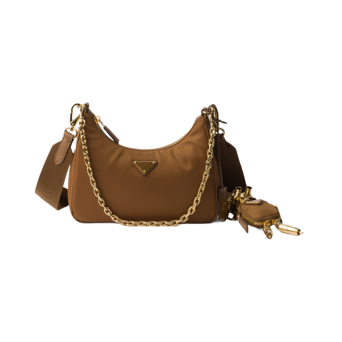 Prada Re-Edition 2005 Re-Nylon and Saffiano Leather Bag with Charm Brandy