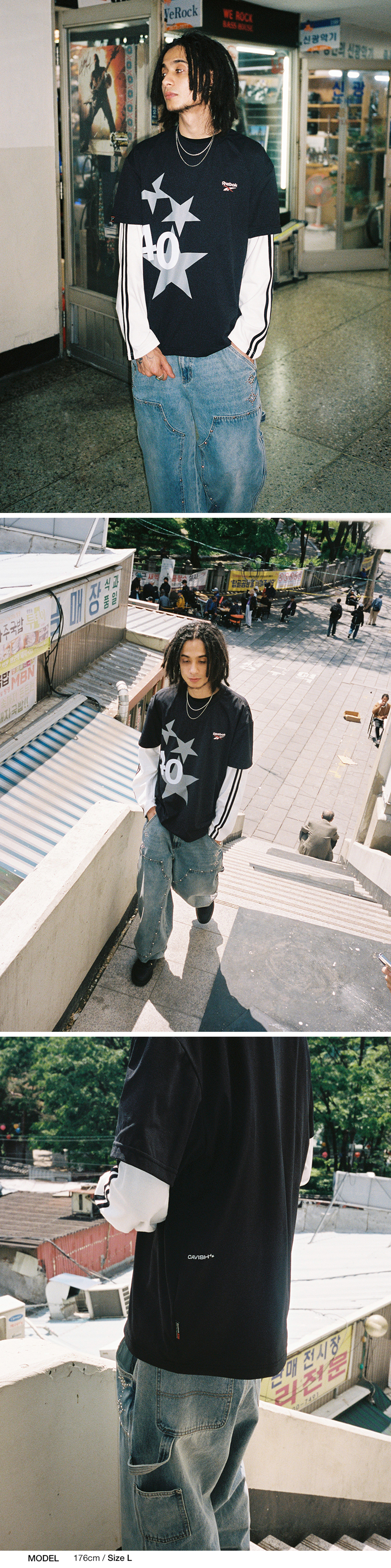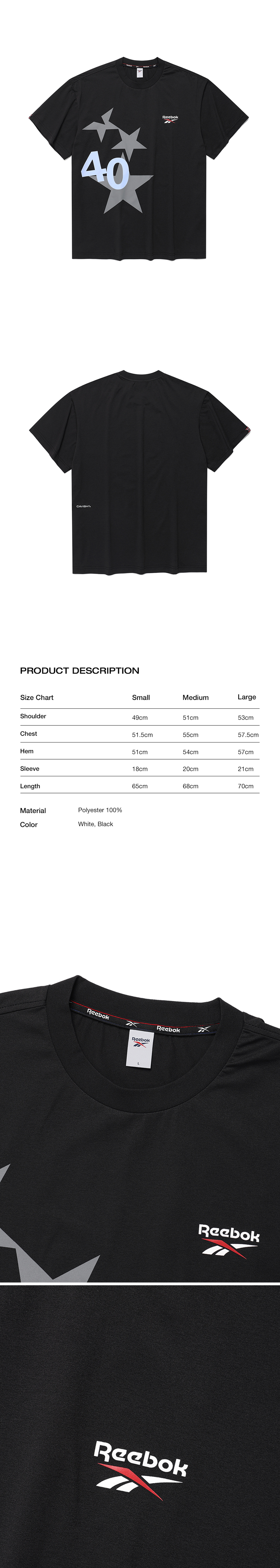 카비시 x 리복 40 스타 숏 슬리브 티셔츠 블랙