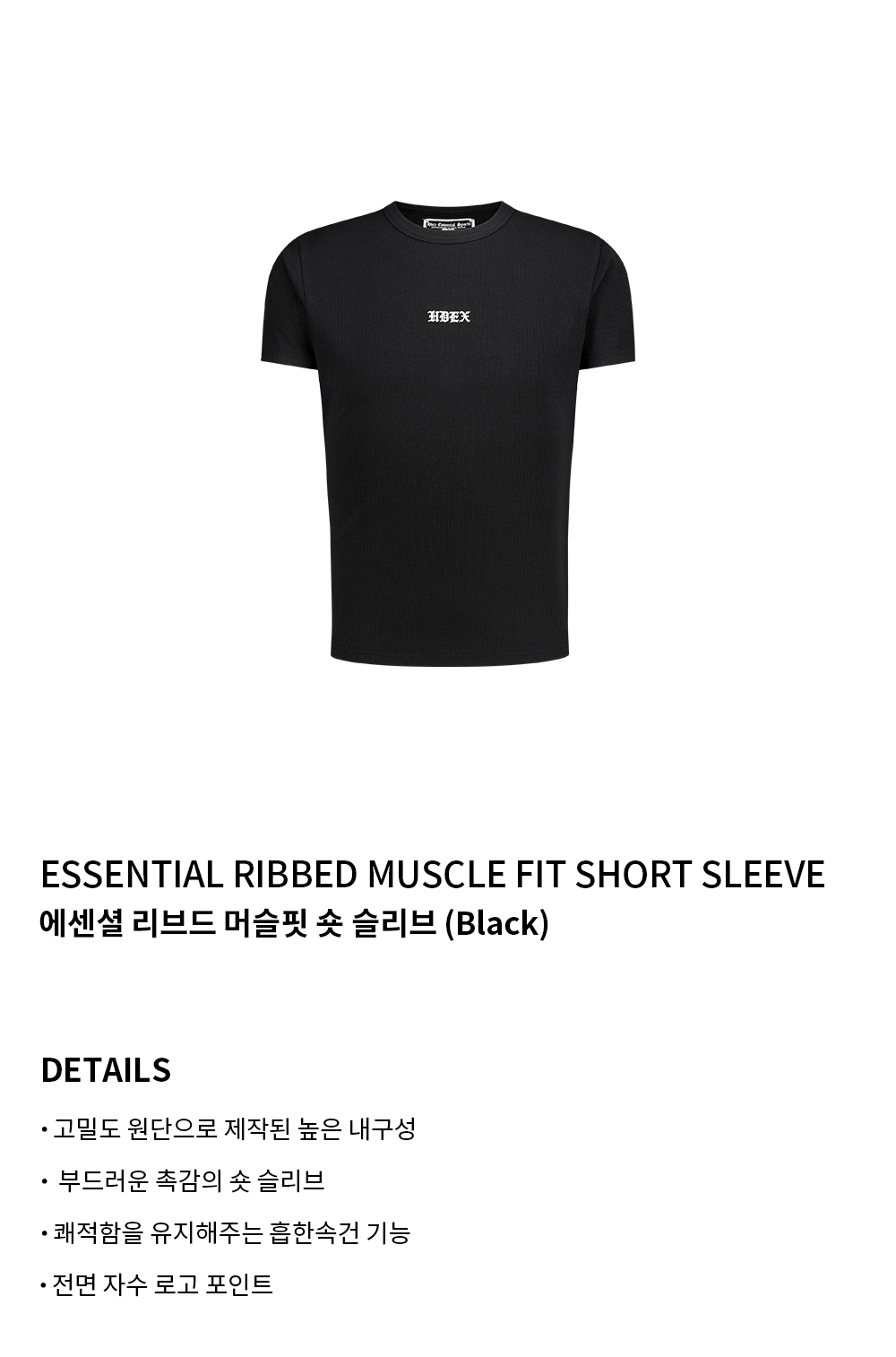 에이치덱스 에센셜 리브드 머슬핏 숏 슬리브 Black