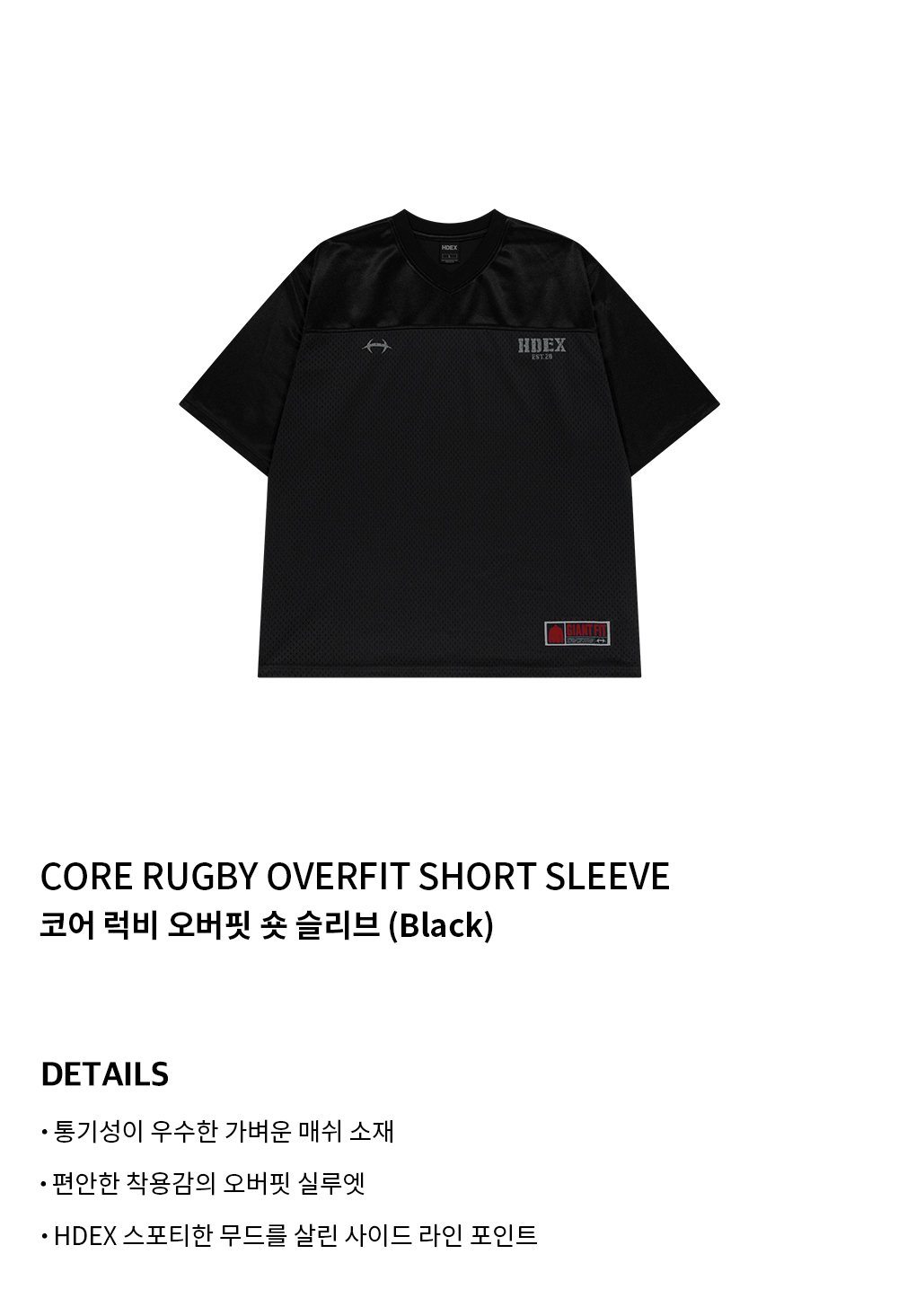 에이치덱스 코어 럭비 오버핏 숏 슬리브 Black