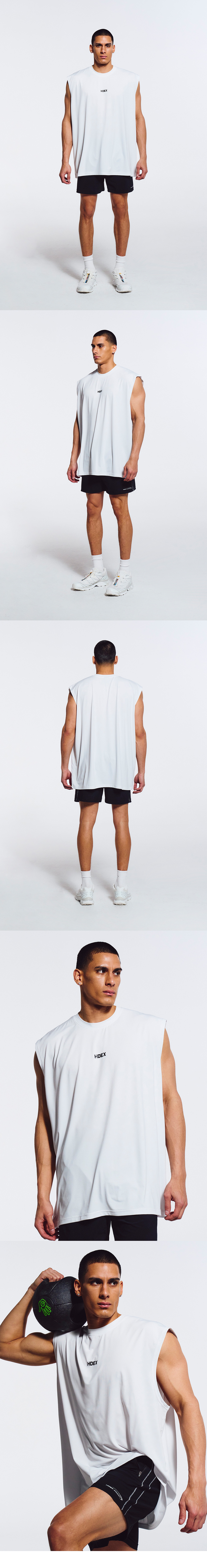에이치덱스 메인 스몰 로고 오버핏 슬리브리스 White