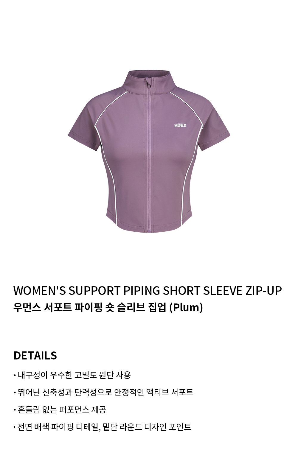 에이치덱스 우먼스 서포트 파이핑 숏 슬리브 집업 Plum