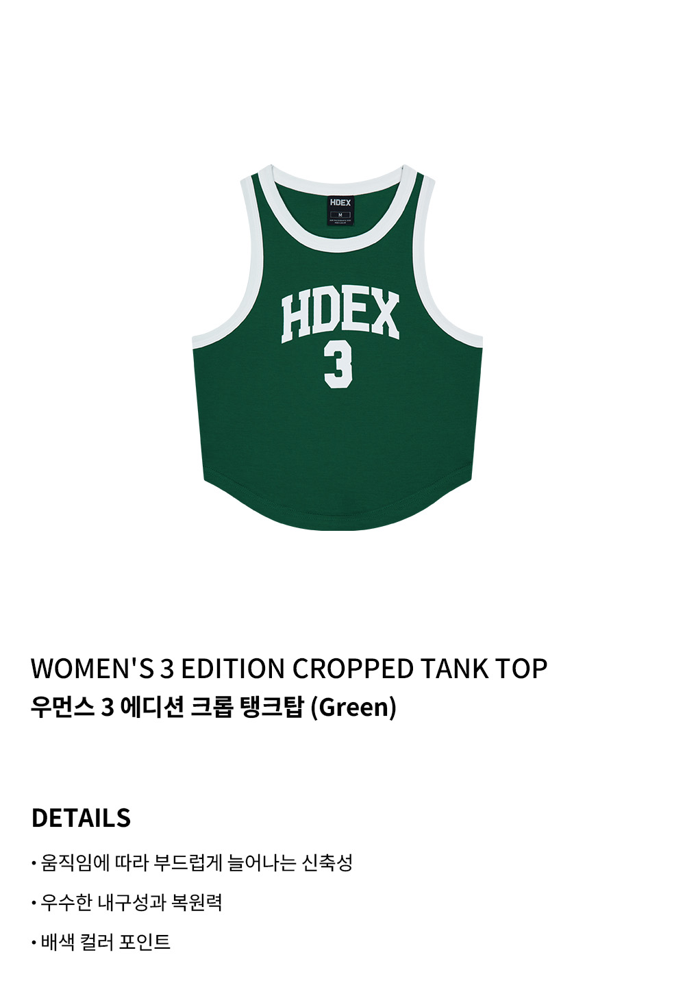 에이치덱스 우먼스 3 에디션 크롭 탱크탑 Green