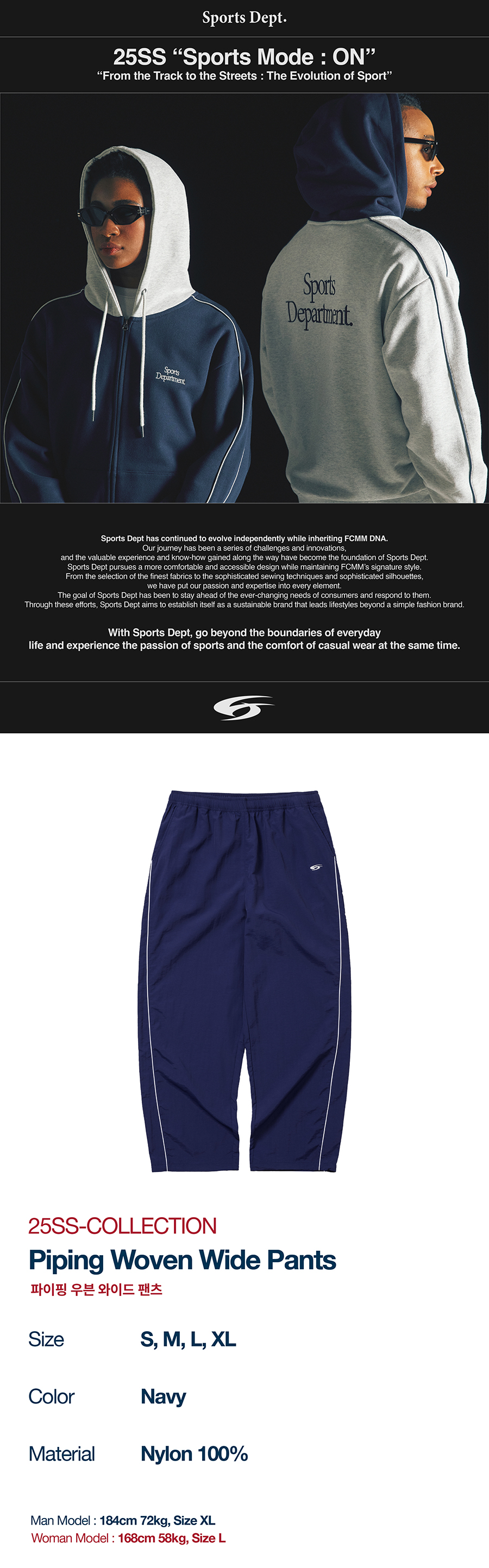 스포츠뎁트 파이핑 우븐 와이드팬츠 네이비