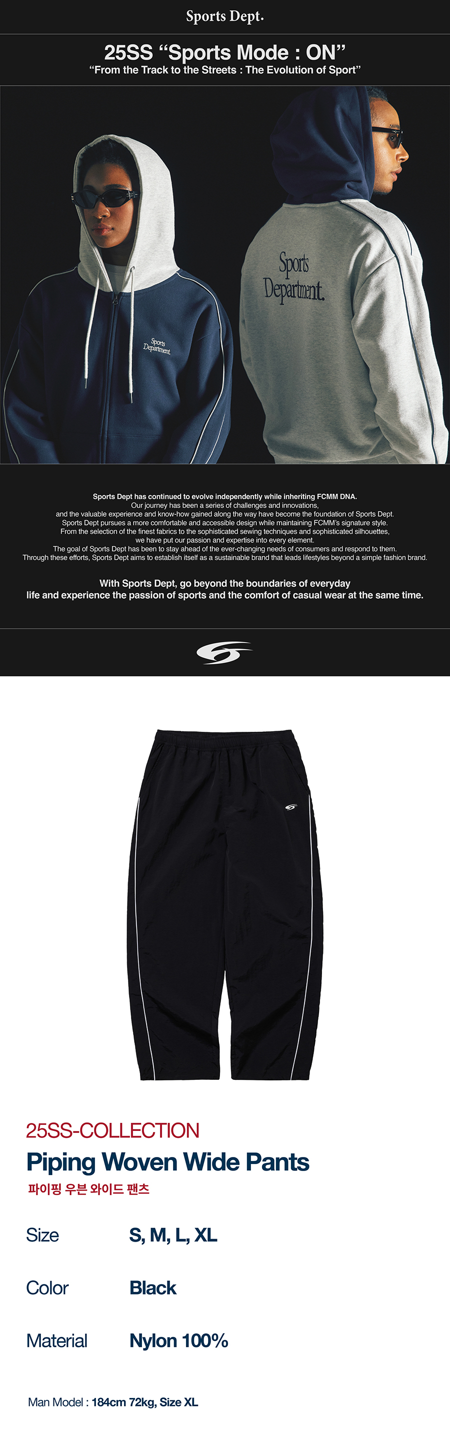 스포츠뎁트 파이핑 우븐 와이드팬츠 블랙
