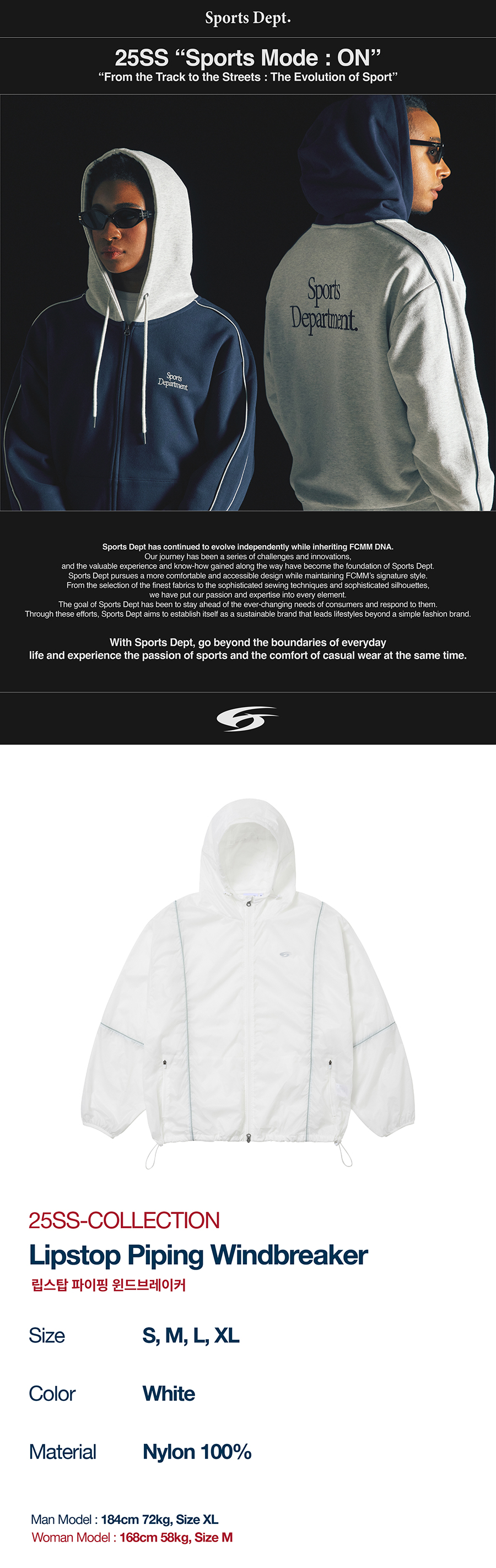 스포츠뎁트 립스탑 파이핑 윈드브레이커 화이트