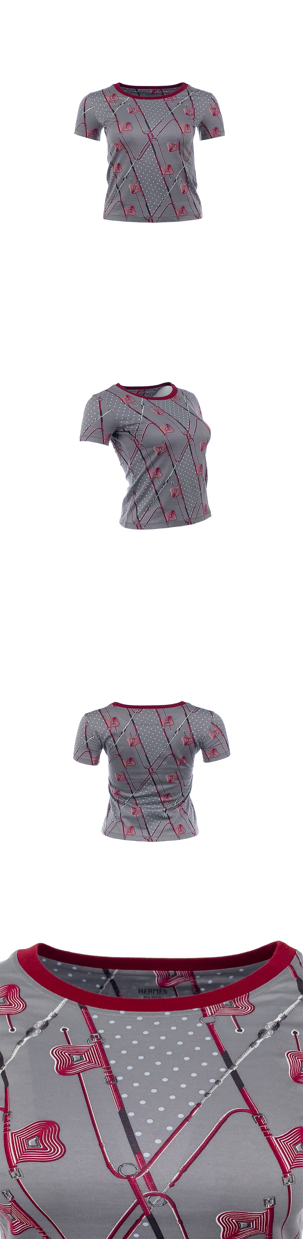 Hermes Click Clack Short Sleeve Cotton T Shirt 34 Gray Red