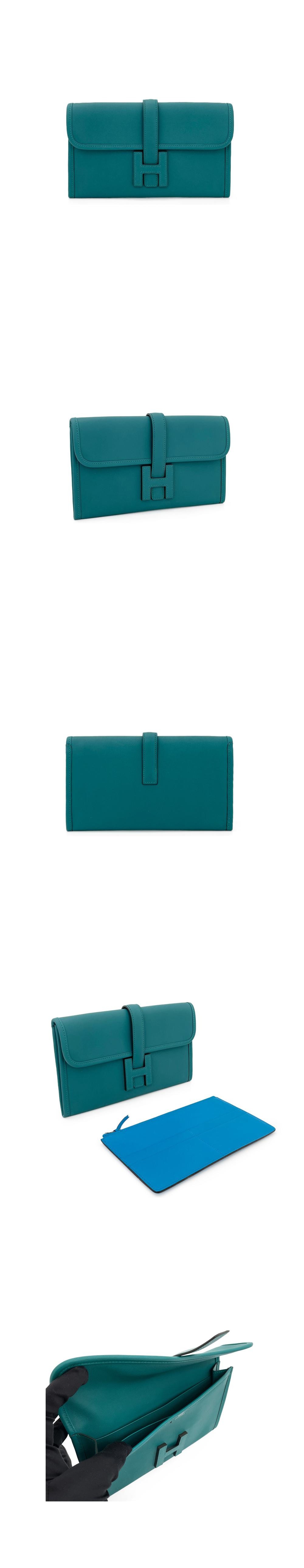 Hermes Jige Duo Wallet Malachite/Blue Zanzibar
