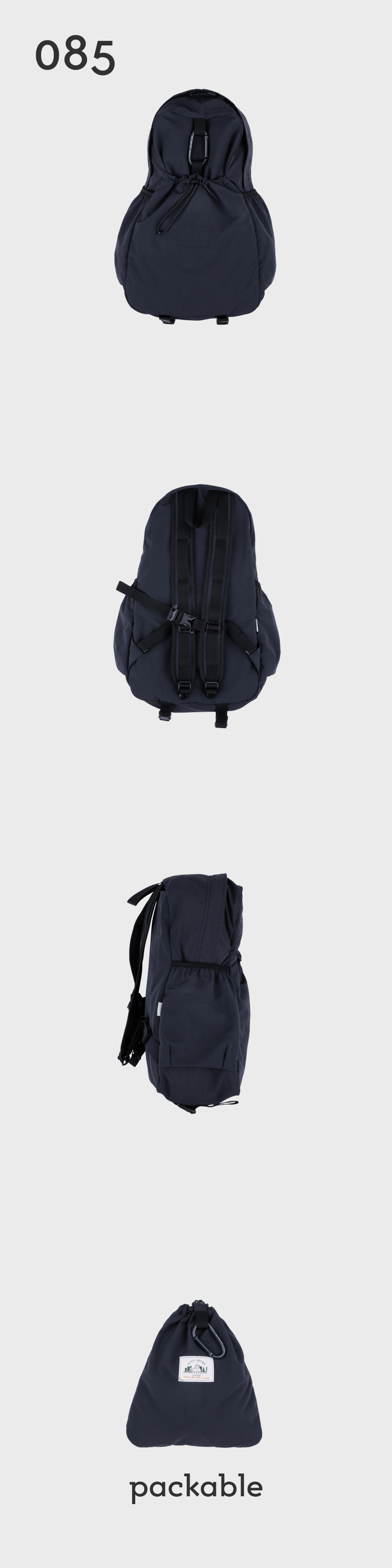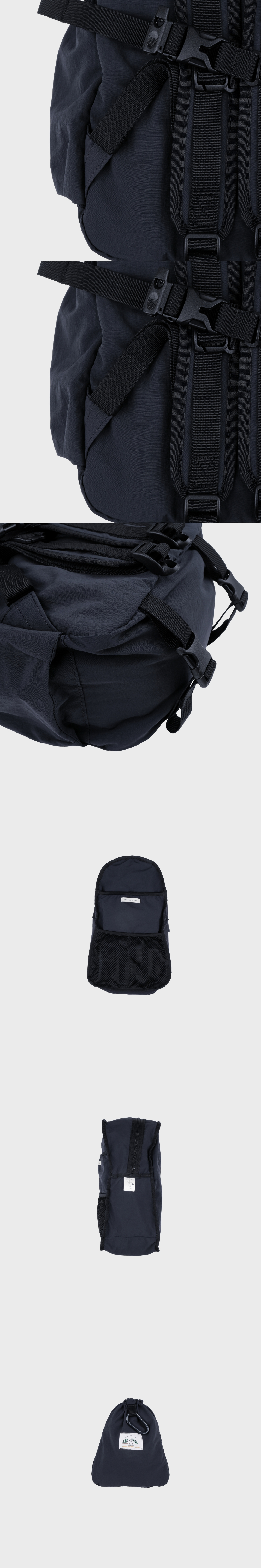- 천연 면소재의 질감과 터치감을 가지고 있는 견고한 내구성의 평직 나일론 원단 - WR발수 처리 가공으로 가벼운 생활방수 가능 - 내부 태블릿 및 노트북 포켓과 메쉬 원단의 투 포켓, 외부 양 사이드포켓과 전면 스트링 포켓으로 구성 - 085 > 맥북 13인치 수납 가능 - 탈부착 가능한 가슴 끈에 위급한 상황시 사용할 수 있는 휘슬이 달려있습니다. - 에메모가든이 각인된 카라비너에 모자, 소품 등을 걸어 포인트를 줄 수 있습니다. (슬러브 제품은 가방과 카라비너 컬러가 같습니다.) - 전면 스트링 포켓으로 가방을 뒤집어 넣어 패커블이 가능하며 거북이 패치 라벨로 포인트를 주었습니다. (바깥 면에서는 사각형의 스티치 라인만 보입니다.)