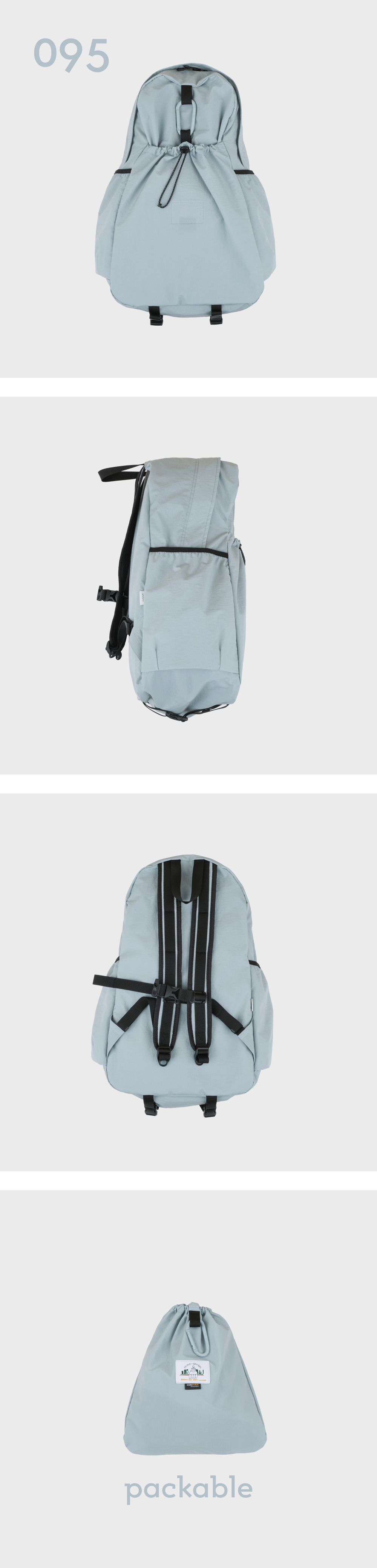- 워싱 가공으로 내추럴하게 구겨진 텍스처와 나일론 특유의 바스락거림이 특징인 원단 - INVISTA의 CORDURA® Fabric으로 가벼우면서 견고한 것이 특징이며 생활 발수 및 방수 기능의 지속성을 위해 테프론 가공 처리 - 내부 태블릿 및 노트북 포켓과 메쉬 원단의 투 포켓, 외부 양 사이드포켓과 전면 스트링 포켓으로 구성 - 095 > 맥북 14인치 수납 가능 - 탈부착 가능한 가슴 끈에 위급한 상황시 사용할 수 있는 휘슬이 달려있습니다. - 에메모가든이 각인된 카라비너에 모자, 소품 등을 걸어 포인트를 줄 수 있습니다. - 전면 스트링 포켓으로 가방을 뒤집어 넣어 패커블이 가능하며 거북이 패치 라벨로 포인트를 주었습니다. (바깥 면에서는 사각형의 스티치 라인만 보입니다.)
