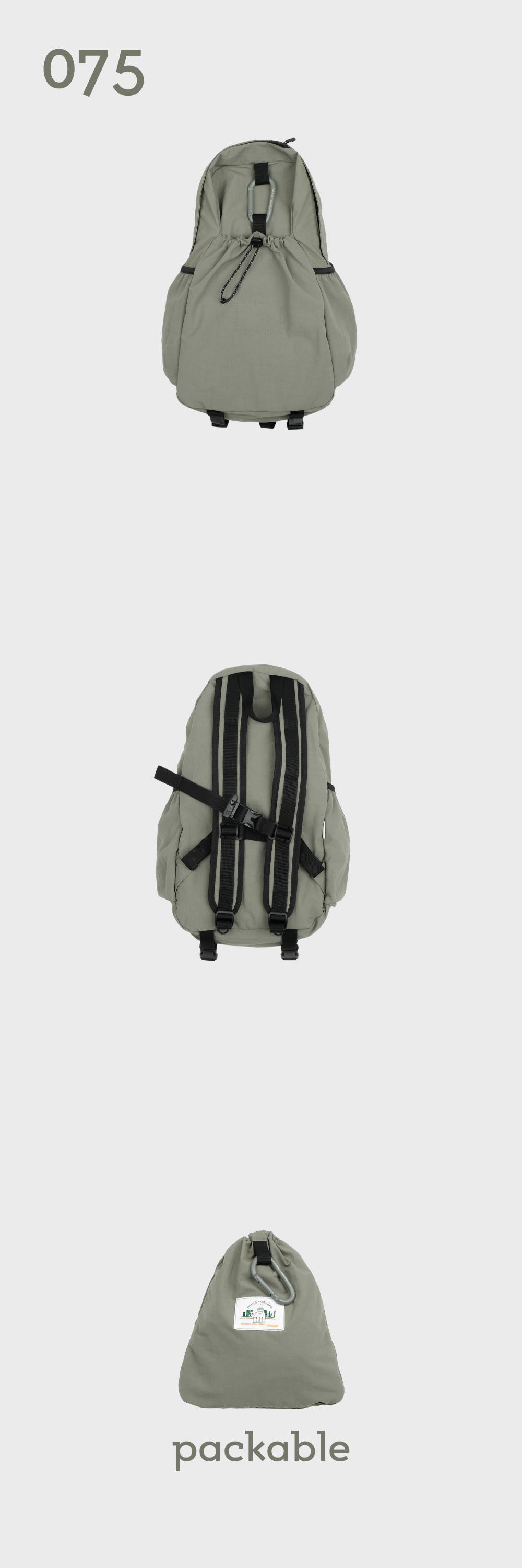 - 천연 면소재의 질감과 터치감을 가지고 있는 견고한 내구성의 평직 나일론 원단 - WR발수 처리 가공으로 가벼운 생활방수 가능 - 내부 태블릿 및 노트북 포켓과 메쉬 원단의 투 포켓, 외부 양 사이드포켓과 전면 스트링 포켓으로 구성 - 075 > 아이패드 11인치 수납 가능 - 탈부착 가능한 가슴 끈에 위급한 상황시 사용할 수 있는 휘슬이 달려있습니다. - 에메모가든이 각인된 카라비너에 모자, 소품 등을 걸어 포인트를 줄 수 있습니다. (슬러브 제품은 가방과 카라비너 컬러가 같습니다.) - 전면 스트링 포켓으로 가방을 뒤집어 넣어 패커블이 가능하며 거북이 패치 라벨로 포인트를 주었습니다. (바깥 면에서는 사각형의 스티치 라인만 보입니다.)