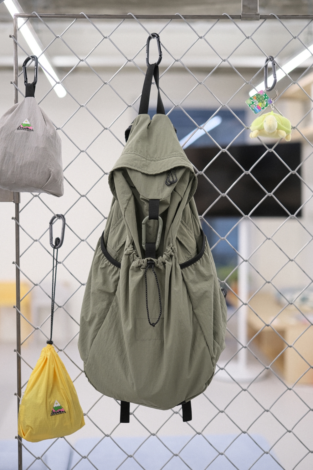 - 천연 면소재의 질감과 터치감을 가지고 있는 견고한 내구성의 평직 나일론 원단 - WR발수 처리 가공으로 가벼운 생활방수 가능 - 내부 태블릿 및 노트북 포켓과 메쉬 원단의 투 포켓, 외부 양 사이드포켓과 전면 스트링 포켓으로 구성 - 085 > 맥북 13인치 수납 가능 - 탈부착 가능한 가슴 끈에 위급한 상황시 사용할 수 있는 휘슬이 달려있습니다. - 에메모가든이 각인된 카라비너에 모자, 소품 등을 걸어 포인트를 줄 수 있습니다. (슬러브 제품은 가방과 카라비너 컬러가 같습니다.) - 전면 스트링 포켓으로 가방을 뒤집어 넣어 패커블이 가능하며 거북이 패치 라벨로 포인트를 주었습니다. (바깥 면에서는 사각형의 스티치 라인만 보입니다.)