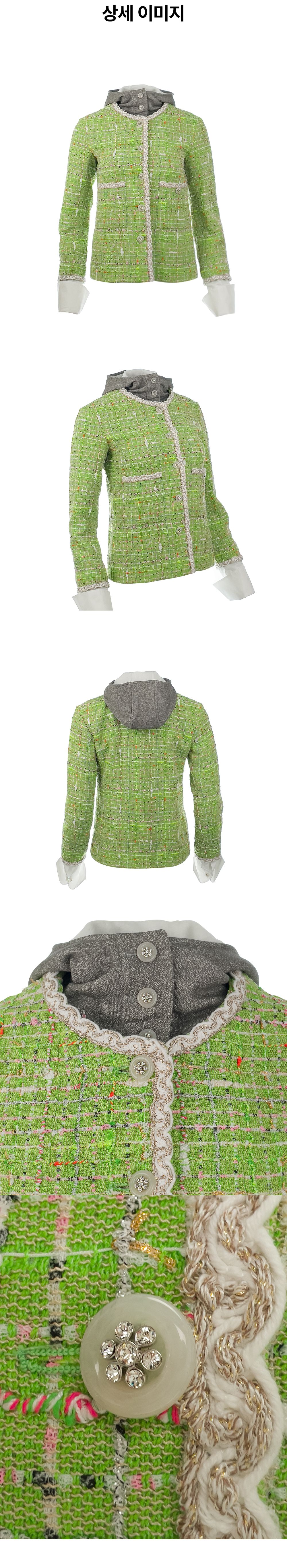 샤넬 25C 후디드 셔츠 트위드 자켓 36 라이트그린/멀티컬러