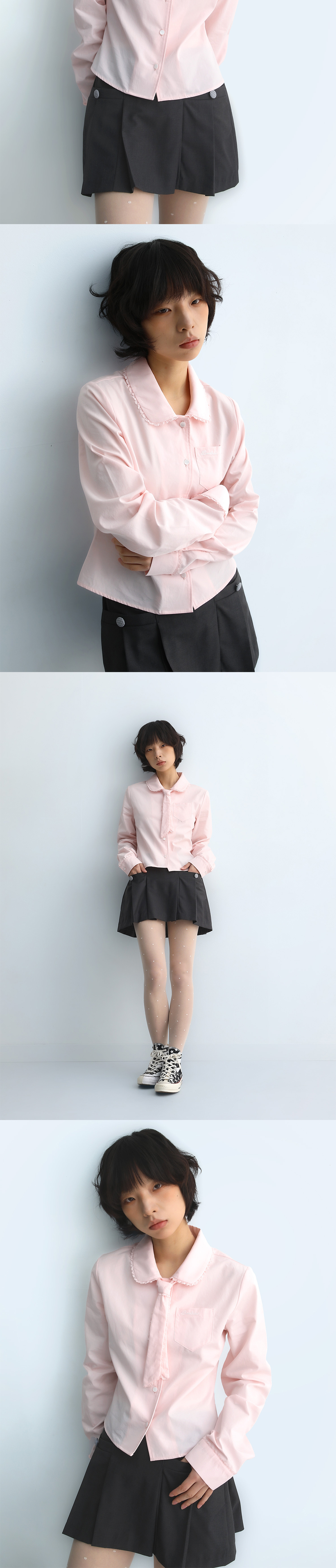 [SIZE] 1 : 총장 55 / 어깨 39.5 / 가슴 47 / 소매 61 (cm) 2 : 총장 55 / 어깨 41.5 / 가슴 49 / 소매 63 (cm) *모델 착용 사이즈 : 1 *모델 : 신장 167cm / 가슴 30.5” / 허리 23” / 힙 33.5” [FABRIC] Cotton 100% [LAUNDRY] 드라이클리닝 권장 세탁 시 찬물 손세탁 권장 (건조기 사용 지양) 환기가 잘 되는 곳에 평평하게 말려주세요 Visual Suspect / Made in Korea