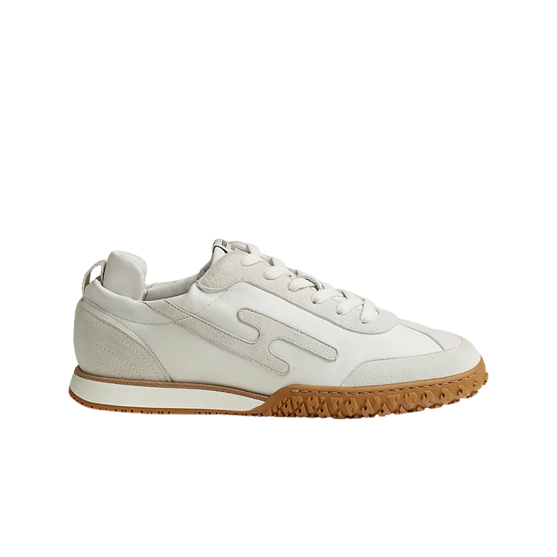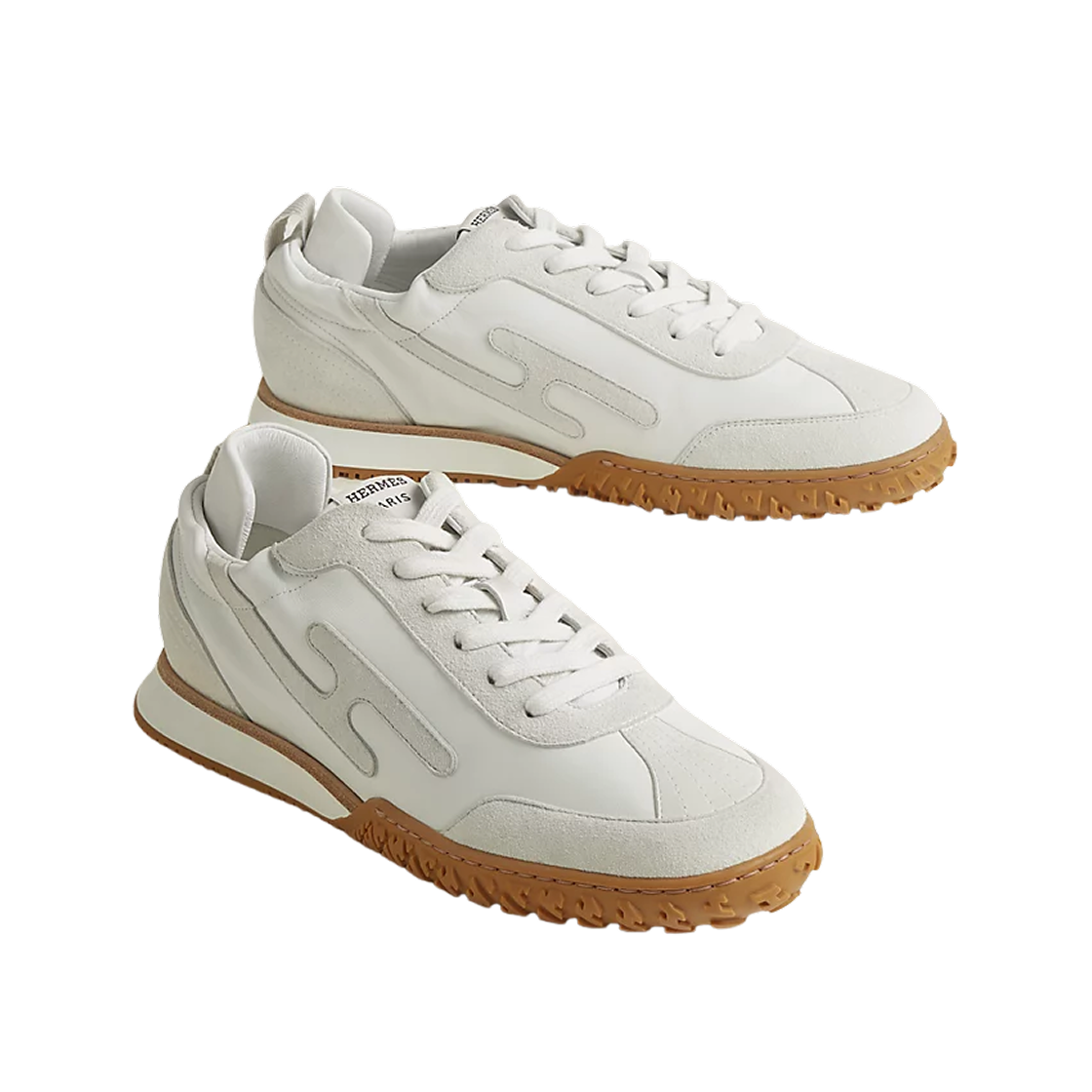 (W) Hermes Jet Sneakers Nappa Suede Goatskin & Blanc