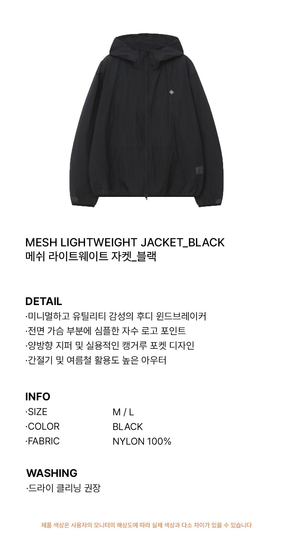 슬로우 레코드 하우스 메쉬 라이트웨이트 자켓 블랙