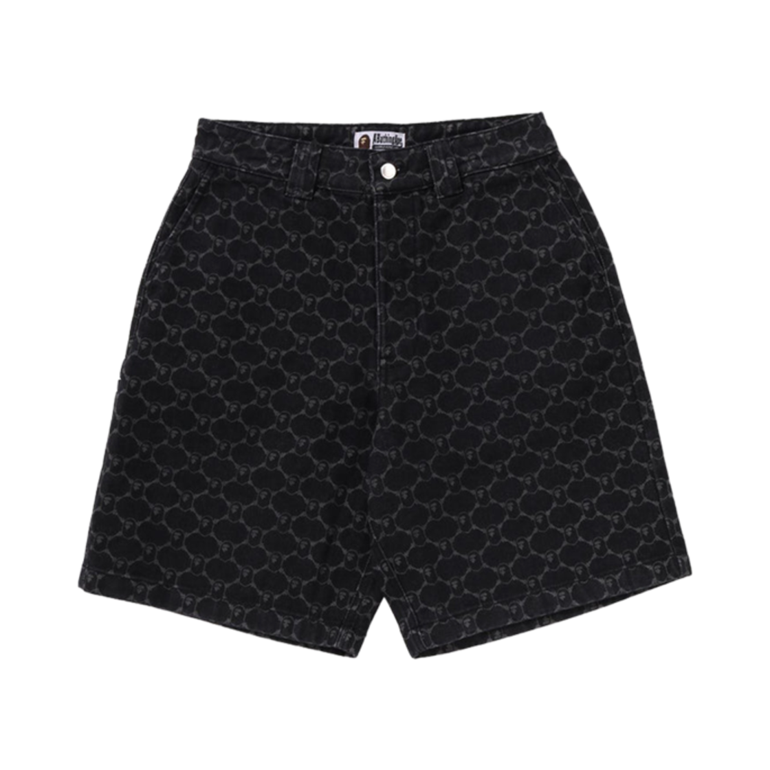 베이프 컬리지 모노그램 릴렉스드 핏 13온즈 데님 쇼츠 블랙