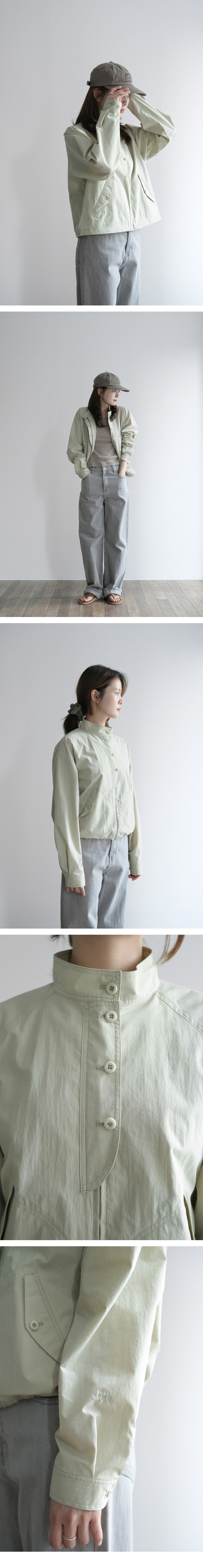 - 자연스러운 주름이 있는 코튼 나일론 혼방 원단 - 60수 원단으로 가볍고 쾌적한 착용감 - 크롭한 기장감과 플랩포켓, 짧은 플라켓 디자인 - 목까지 클로징 할 수 있는 스탠드 넥 디자인 - 넓은 사이즈 포용을 위한 래글런 패턴 - 내구성과 질감이 좋은 오리지널 너트 단추 - 통기성이 좋도록 암홀 하단 부분에 아일렛 부착 - 왼쪽 소매단에 톤온톤 로고 자수 포인트 - 하단 스토퍼로 스타일에 따라 다양한 핏 연출 가능 model : 162 / 42