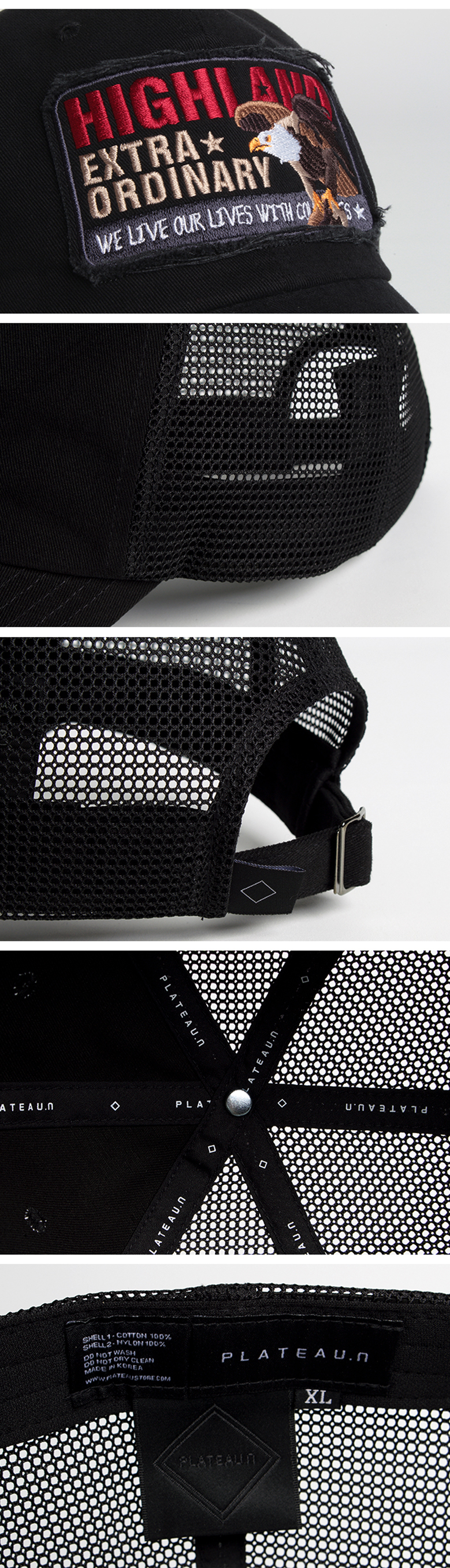 플래토 빅사이즈 하이 이에이 메쉬 볼캡 블랙