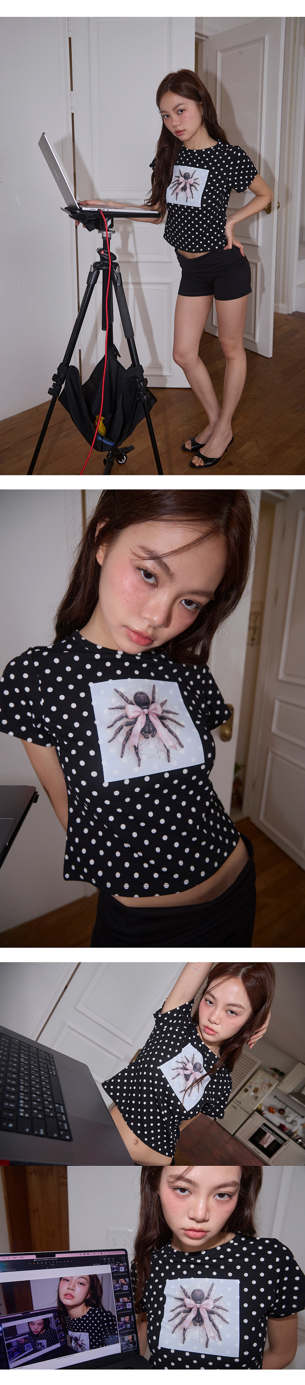 미니멀페어 폴카 도트 스파이더 티셔츠 블랙