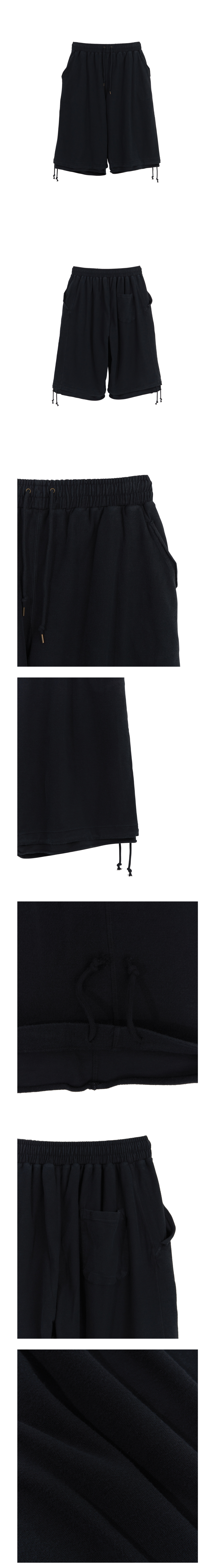 No. AY-PT12 7~8부 기장감에 밑단에서 이중으로 떨어지는 레이어드가 포인트인 크롭 팬츠입니다. 미니 프렌치 테리 원단의 안쪽 면을 메인으로 사용하고, 안감처럼 레이어드되는 원단을 겉면에 배치하여 자연스럽게 어우러지도록 디자인했습니다. 설파 염료를 사용해 가먼트 다잉하여, 착용할수록 자연스러운 에이징과 경년 변화를 느낄 수 있습니다. 풍성한 실루엣을 연출하기 위해 옆선을 뒤로 이동시켰으며, 좁은 가이루빠 봉제로 마감하였습니다. 여유 있는 실루엣의 티셔츠와 함께 스타일링하기에 좋다고 생각합니다. MADE IN KOREA Color Faded Black Material Cotton 100%