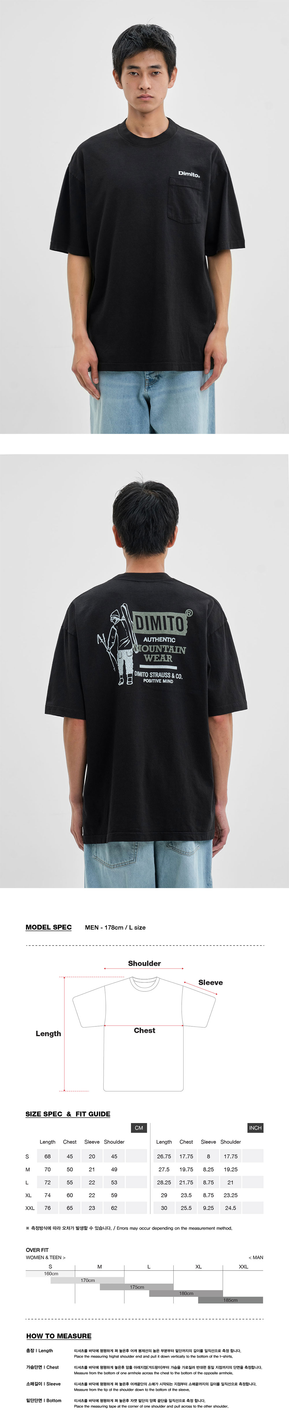 디미토 어센틱 엠티 포켓 에스에스브이 지디 6.5온즈 티 블랙