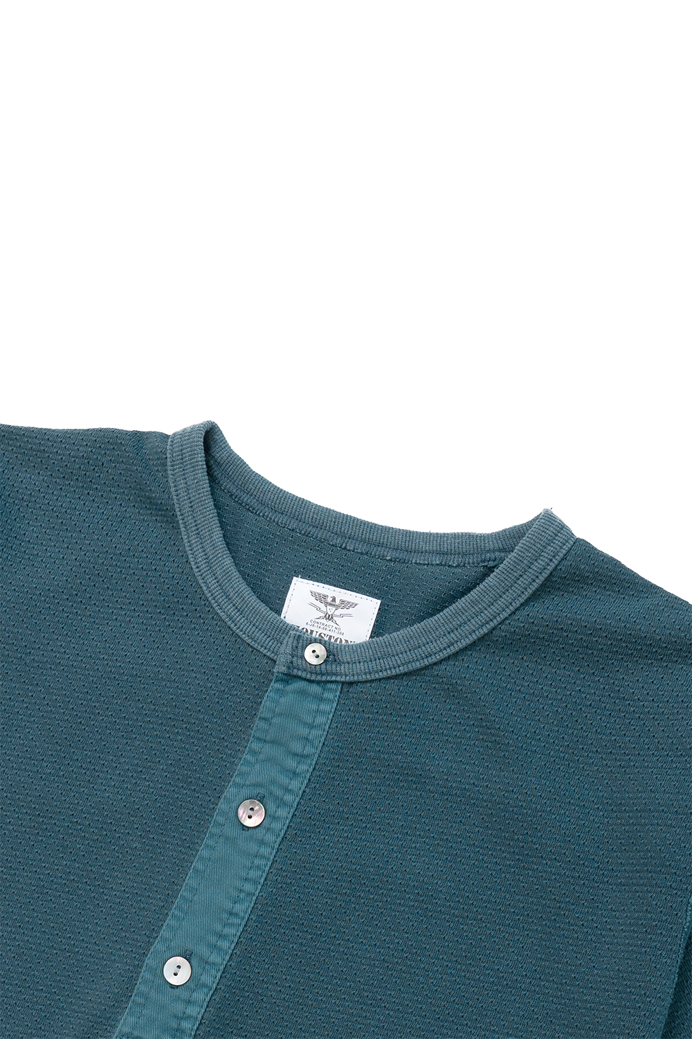 Houston Japan 22292 Mesh H/N Tee - Navy 여름용 써멀 원단으로 주름이 잘 지지 않고, 흡수성, 건조가 빠르므로 관리가 쉽습니다. 소매에 배색 디테일, 피그먼트 가공으로 빈티지한 느낌이 특징입니다. 이너 뿐 아니라 단품으로도 포인트가 되는 범용성 높은 제품입니다. * Cotton 100% * 빛에 의한 제품의 색감 차이가 존재 할 수 있습니다. * Made in China