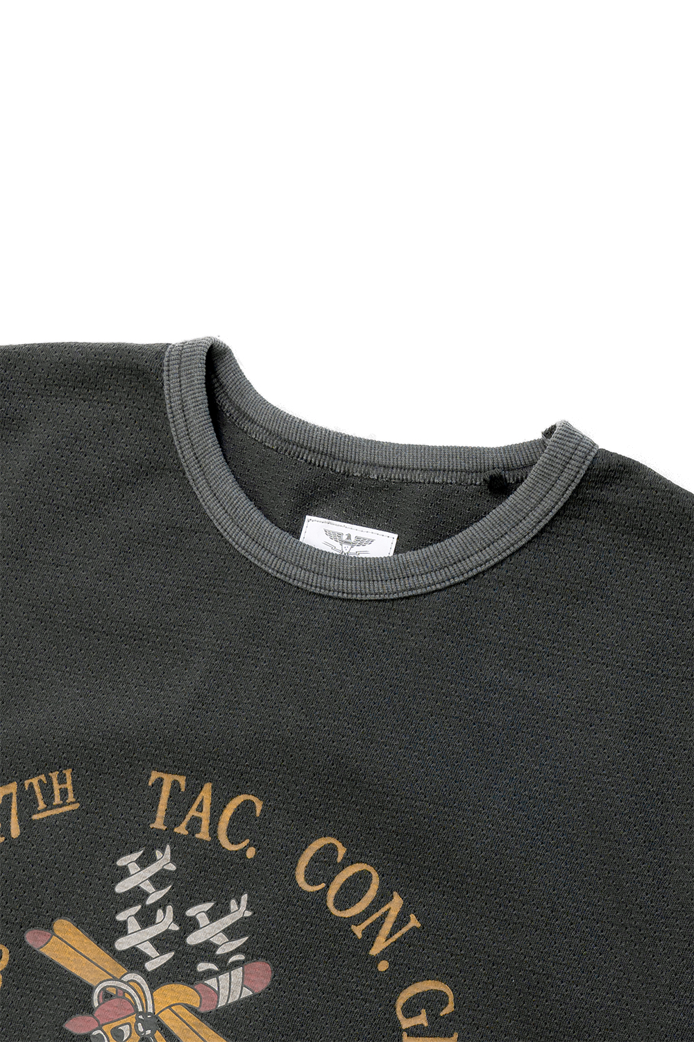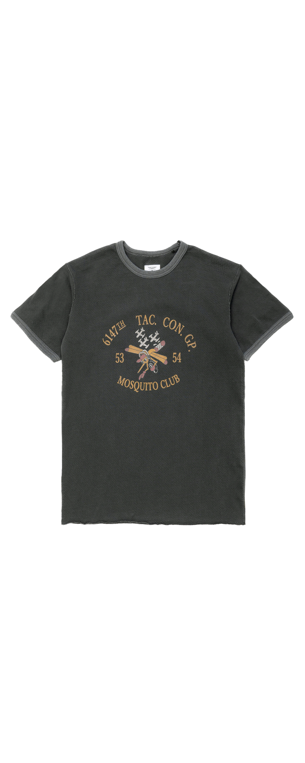 Houston Japan 22295 Mesh C/N Print tee (Mosquite Club) - Black 여름용 써멀 원단으로 주름이 잘 지지 않고, 흡수성, 건조가 빠르므로 관리가 쉽습니다. 전면부의 Mosquite Club 아트웍과 소매 배색 디테일, 피그먼트 가공으로 빈티지한 느낌이 특징입니다. 이너 뿐 아니라 단품으로도 포인트가 되는 범용성 높은 제품입니다. * Cotton 100% * 빛에 의한 제품의 색감 차이가 존재 할 수 있습니다. * Made in China