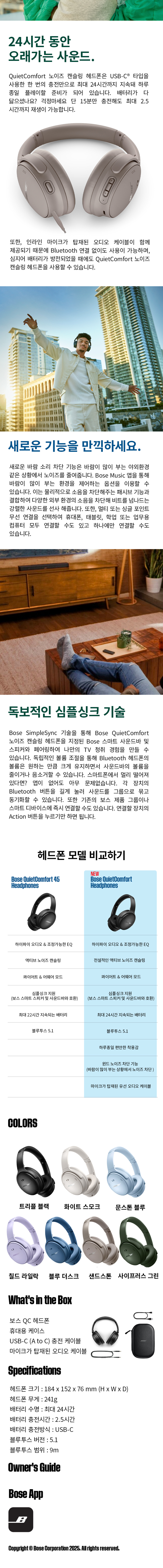 보스 QC 헤드폰 칠드 라일락