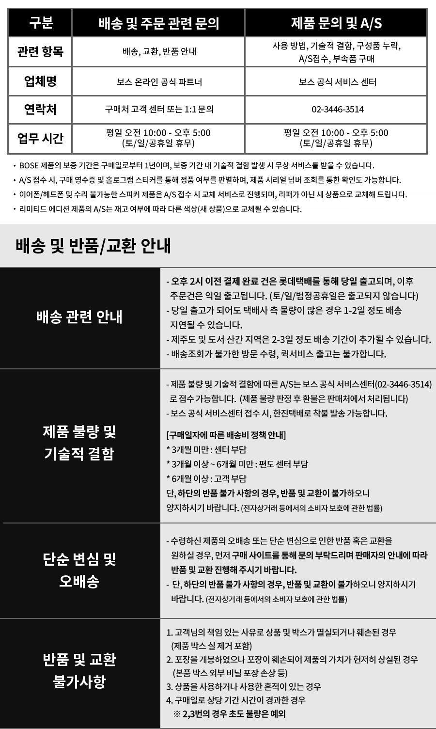 교환 및 반품 안내