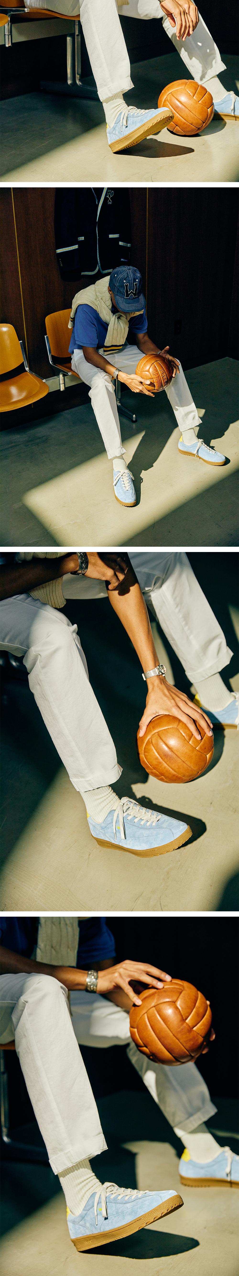 𝑵𝟎'S PROJECTS (𝑵ew 𝟎ld Stocks) 의 두번째 프로젝트 TENEO는 70년대 탄생된 CUP SOLE을 고증한 제품으로, 당시 테니스 선수들을 위해 제작된 서독 생산 기반의 메이킹을 고증하였습니다. 전체적으로 낮고 길게 뻗어있는 라스트 모양과 아치 서포트를 위한 바텀 설계, 토 끝의 챔퍼는 운동성과 스포츠매너를 동시에 보여주며 광택과 힘이 있는 레더 어퍼와 LACE-TO-TOE 형식을 계승한 논스톱 패턴, 골드 스탬프 로고 등 70년대 컵솔에서만 느낄 수 있는 디테일들을 고증하였습니다. TENEO를 위해 독자적으로 개발한 아웃솔 70'S PLS 아웃솔은 점-선-면의 이니셜로, 포어풋의 피벗 포인트가 선이 되고 선이 모여 면을 이루는 형식의 독자적인 디자인입니다. 표면의 거친 돌기가 미끄럼을 방지 해주며 사이드 월에 위치한 Alliance Stitching은 갑피와 아웃솔을 더욱 강력하게 결속합니다.