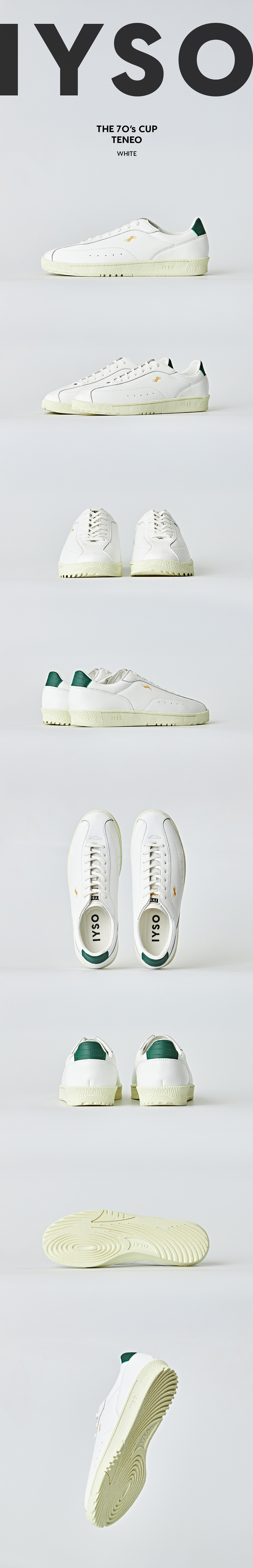 𝑵𝟎'S PROJECTS (𝑵ew 𝟎ld Stocks) 의 두번째 프로젝트 TENEO는 70년대 탄생된 CUP SOLE을 고증한 제품으로, 당시 테니스 선수들을 위해 제작된 서독 생산 기반의 메이킹을 고증하였습니다. 전체적으로 낮고 길게 뻗어있는 라스트 모양과 아치 서포트를 위한 바텀 설계, 토 끝의 챔퍼는 운동성과 스포츠매너를 동시에 보여주며 광택과 힘이 있는 레더 어퍼와 LACE-TO-TOE 형식을 계승한 논스톱 패턴, 골드 스탬프 로고 등 70년대 컵솔에서만 느낄 수 있는 디테일들을 고증하였습니다. TENEO를 위해 독자적으로 개발한 아웃솔 70'S PLS 아웃솔은 점-선-면의 이니셜로, 포어풋의 피벗 포인트가 선이 되고 선이 모여 면을 이루는 형식의 독자적인 디자인입니다. 표면의 거친 돌기가 미끄럼을 방지 해주며 사이드 월에 위치한 Alliance Stitching은 갑피와 아웃솔을 더욱 강력하게 결속합니다.