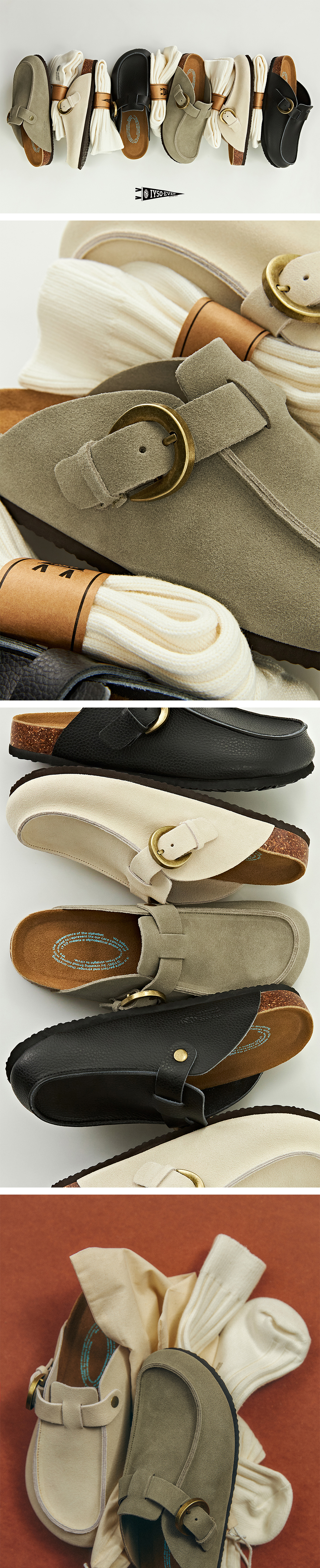 IYSO-EVER는 Essential footwear로 합리적인 가격으로 누구나 언제 어디서든 즐길 수 있는 풋웨어를 지향합니다. UTE는 코르크 미드솔과 EVA 아웃솔, 부드러운 스웨이드 풋베드 베이스의 뮬타입 제품으로 아웃 스티칭된 U-TOE 뱀프 라인과 웨스턴 무드의 버클이 특징이며 TAUPE / CREMA / BLACK 3가지 컬러가 출시됩니다. 사용자의 목적에 따라 실외 혹은 실내에서도 착용할 수 있으며 크림 컬러의 면 폴리 8:2 혼방의 Heavy Duty Socks와 더스트백이 포함됩니다.