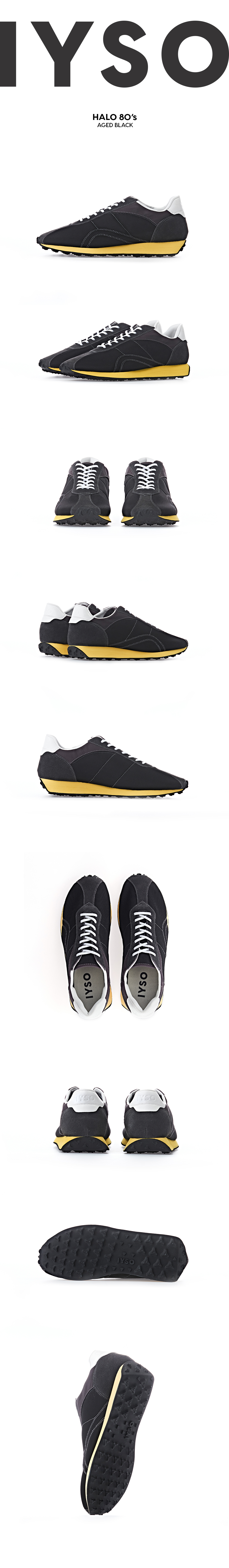 IYSO의 Foundation Line으로 선보이는 될 MERCURY 80's는 2020년 출시되었던 MERCURY를 80년대 버전으로 리메이크 한 제품입니다. IYSO로서는 존재하지 않는 80년대 아카이브를 창조 한다는 이 미션은 지금은 빈티지가 된, 당시 80S 러너라인을 개발하셨던 명장분들과의 협업으로 이루어냈으며 80년대 그대로의 제법을 계승하여 제품을 만들어내었습니다. 40년이 지나 토스프링이 완전히 가라앉은 토쉐잎의 라스트, 텐션을 잃어버린 내패딩과 보강제, 한껏 끌어당긴 슈레이스와 주름진 스파클링 메시, 세월이 지나 바랜 스웨이드, 본드가 세어나온듯한 미드솔의 EVA 컬러까지 사소한 모든 디테일을 생산성 있게 구현해내었고 마침내 모습을 드러내게 되었습니다.