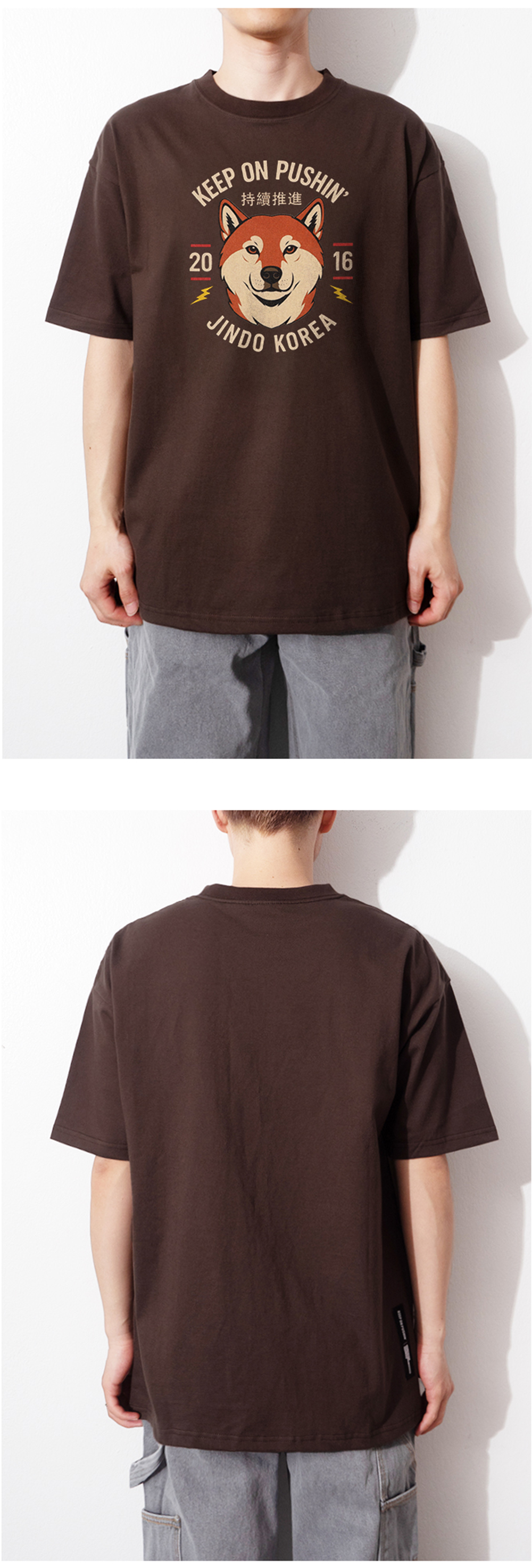 큐티에잇 가먼츠 코리안 진도 티 브라운