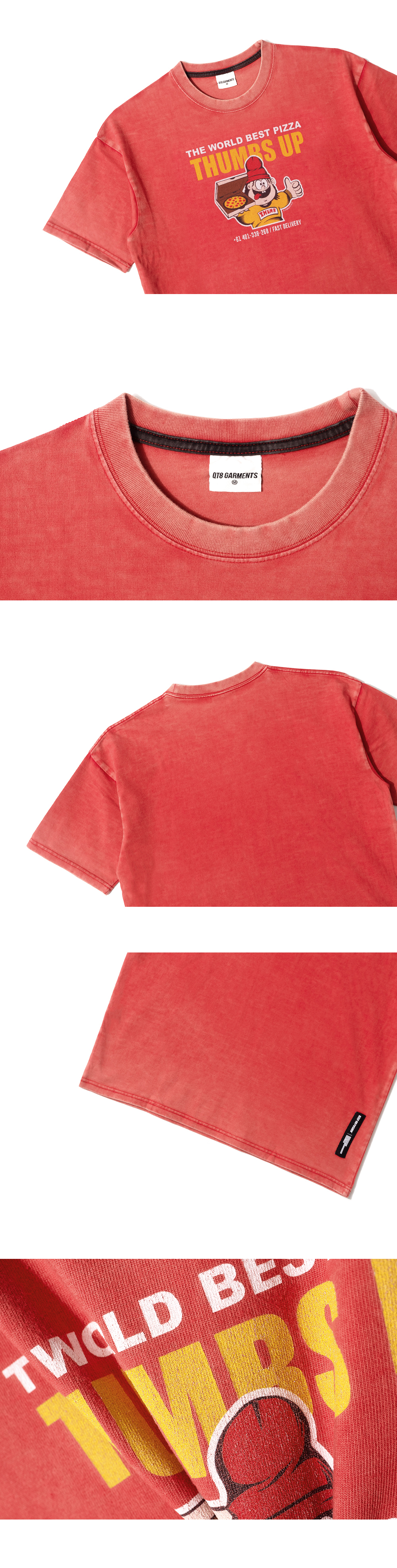QT8 GARMENTS Thumbs Up AQ Washed Tee Red