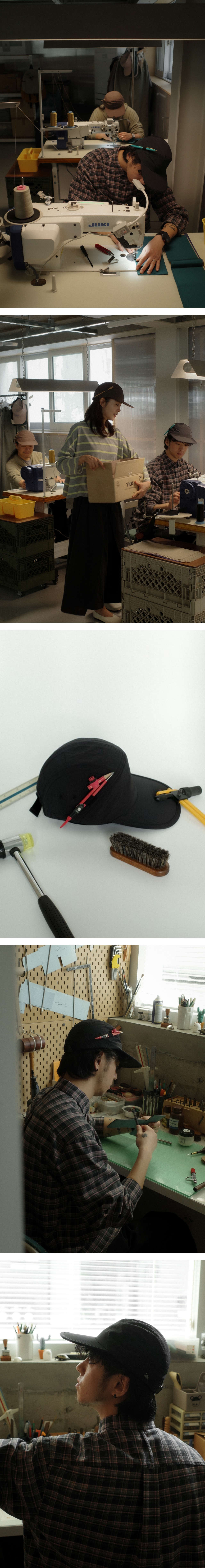 - 광택이 없는 나일론 매트립으로 내구성이 좋은 립스탑 원단 - 쾌적한 착용을 위해 내부 전체 메쉬로 제작 - 왼쪽 미구 프로덕트 로고 자수와 오른쪽 에메모 지그재그 로고 자수로 포인트 - 착용감이 좋도록 버클 고정 부분 고무 밴드로 제작 - 사이드에 연필이나 애플펜슬 등을 꽂을 수 있는 펜슬 홀더 - 생활 방수가 가능한 나일론 소재의 웨어러블한 캡 미구 프로덕트 TOOL 라인 출시에 맞추어 협업으로 제작된 나일론 캡입니다. 홀더에 연필을 꽂아두고 언제 어디서든 아이디어가 떠오르는 순간에 꺼내어 쓰는 생활 속 모습들을 생각했습니다. 이제 아이디어가 필요한 순간이 와도 끄떡없습니다. "Hats on, ideas on!"