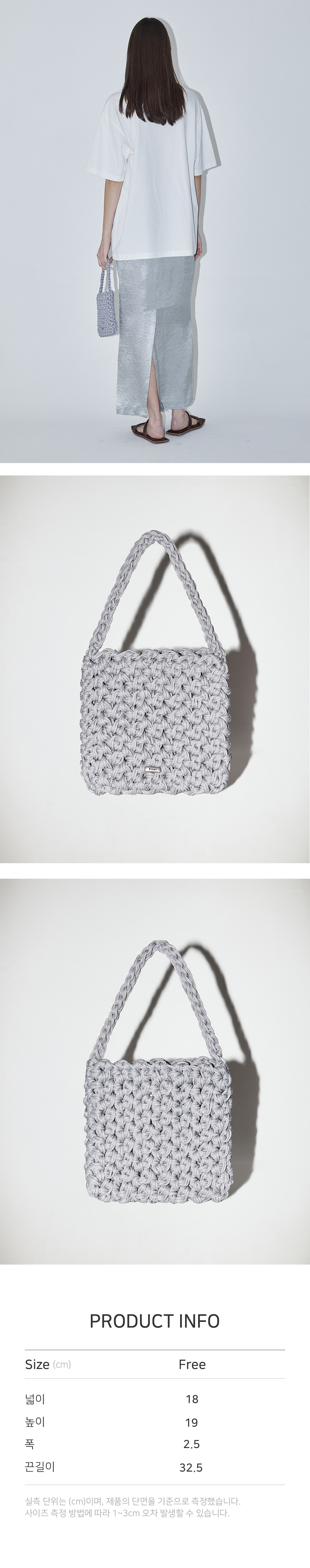 - 핸드 니팅 작업으로 하나하나 정성스럽게 짜여진 니트백입니다. - 볼드하고 단단한 짜임이 매력적인 원사를 사용해 형태감을 안정감 있게 잡아주며, 은은한 광택감이 더해져 한층 고급스러운 분위기를 연출합니다. - 전면에는 엔오르 로고 금속 장식을 더해 세련된 포인트를 담았습니다. - 완성도 높은 디테일과 감각적인 소재감이 어우러진 아이템입니다. - 소재 특성상 제품의 손상과 변형을 막기 위해 세탁은 불가합니다. - 상품 컬러의 경우 디테일 컷을 참고 부탁드립니다.