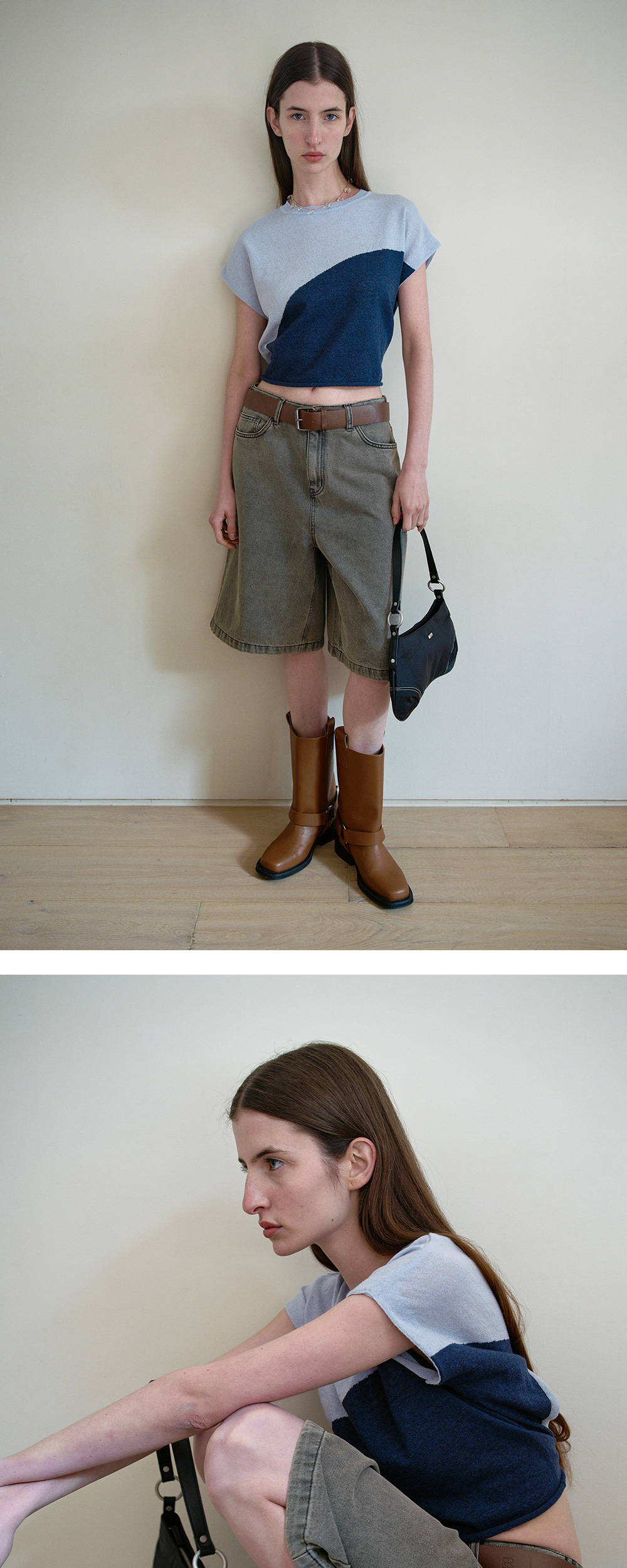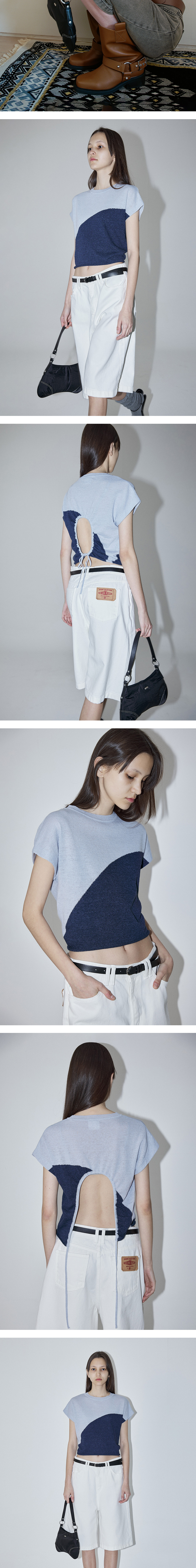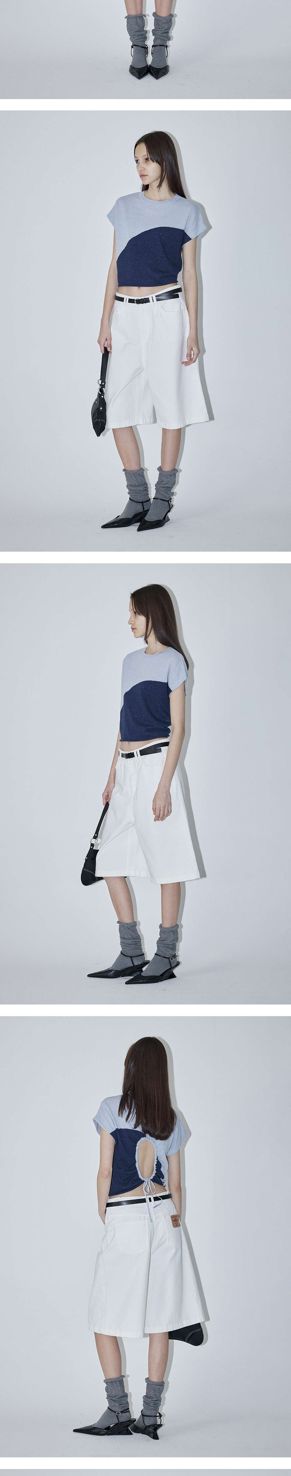 - 크롭한 기장감과 투톤 배색 라인 디테일로 스타일리시하면서도 트렌디한 무드를 연출하는 니트 탑입니다. - 뒷면의 원형 스트링 디테일이 조절 가능하며 자연스러운 셔링이 매력적인 제품입니다. - 스트링을 조절함으로써 다양한 실루엣 연출이 가능합니다. - 밑단에 말림단 디테일로 포인트를 주어, 더욱 입체적이고 세련된 느낌을 선사합니다. - 린넨 혼방 원사로 제작되어 여름철에도 가볍고 시원하게 착용이 가능합니다.