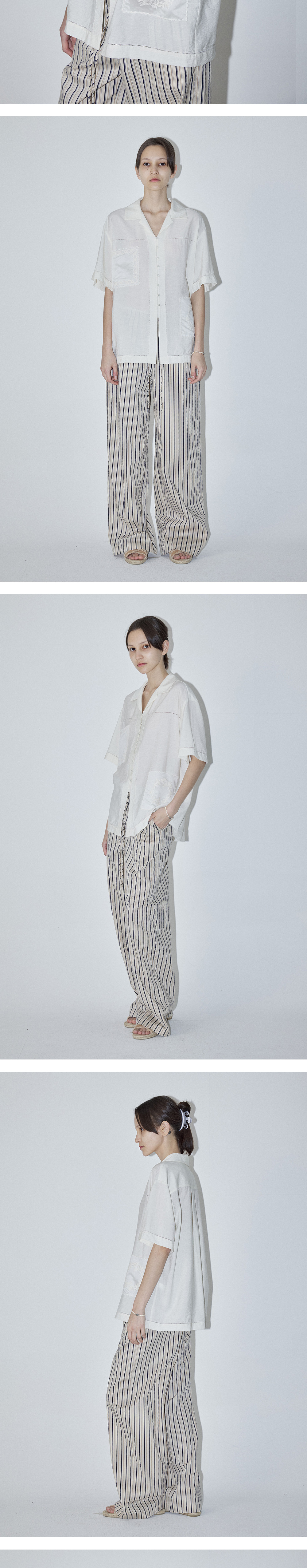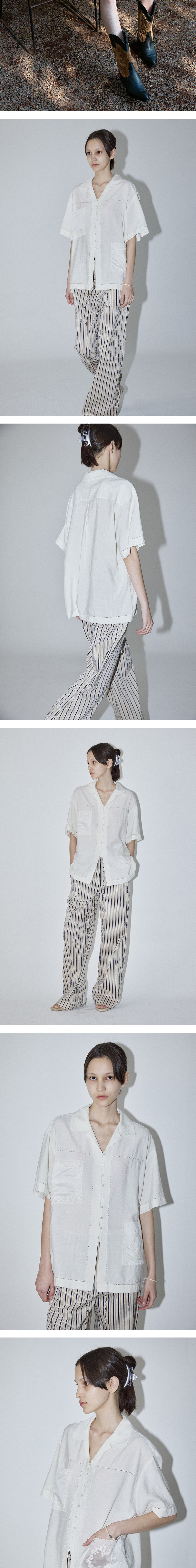 엔오르 우먼 포켓 엠보리더리 패치 하프 슬리브 셔츠 아이보리