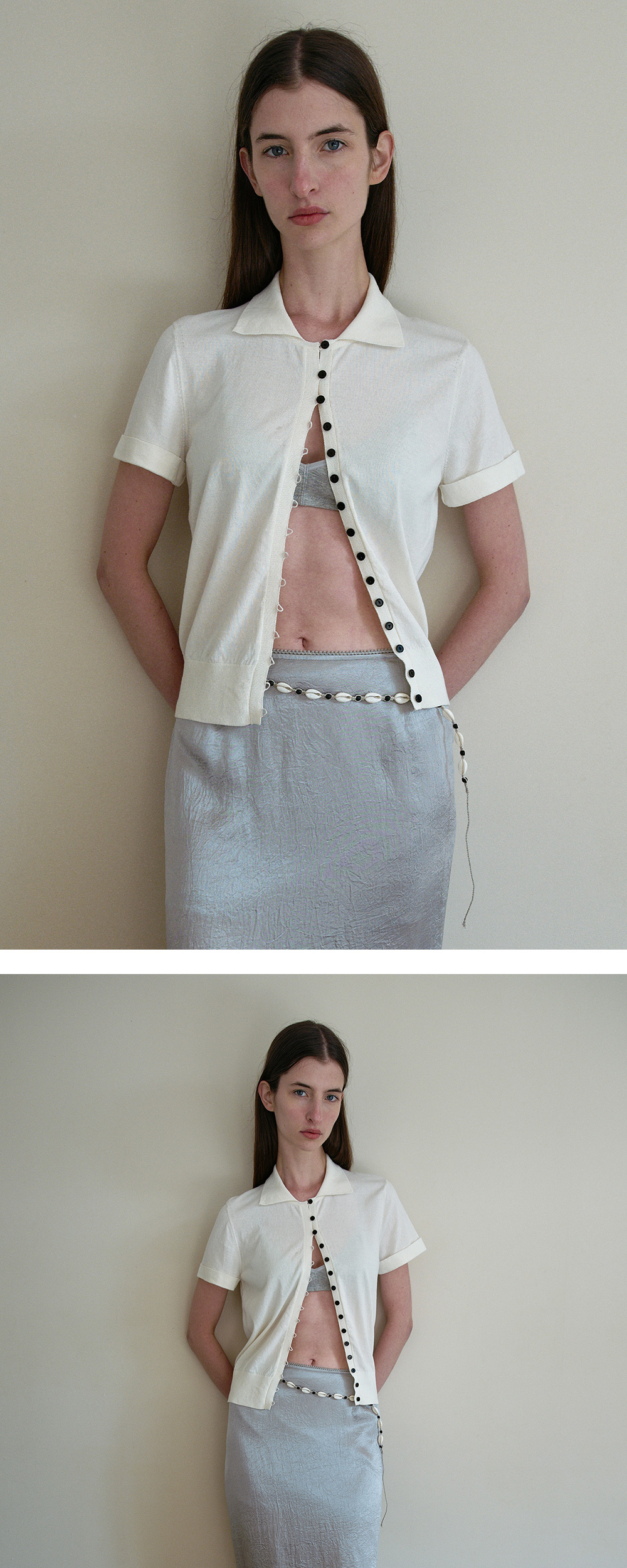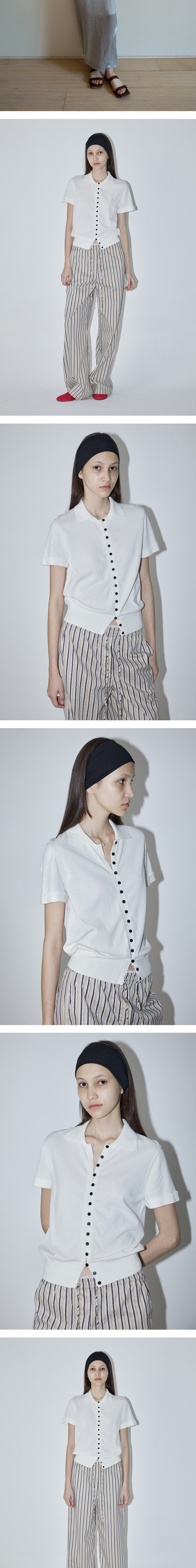 - 클래식한 스탠카라 디자인에 모던한 무드를 느낄 수 있는 반팔 니트 가디건입니다. - 앞단작 배색 멀티 단추와 제원사 고리 여밈 디테일이 더해져 고급스러운 포인트가 되어줍니다. - 소매 턴업 디자인으로 팔 라인을 슬림하게 연출해주어 세련된 실루엣을 완성합니다. - 천연 코튼 100% 원사를 사용해 피부에 부드럽게 닿으며, 쾌적하고 편안한 착용감을 자랑합니다.