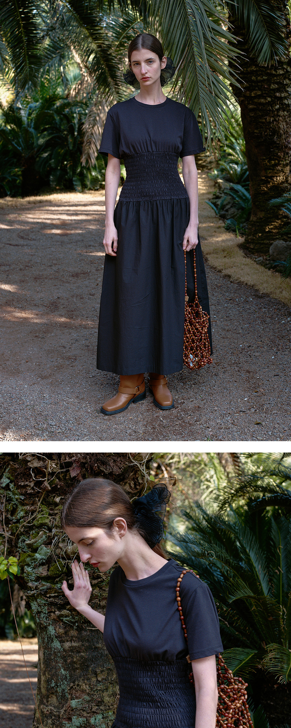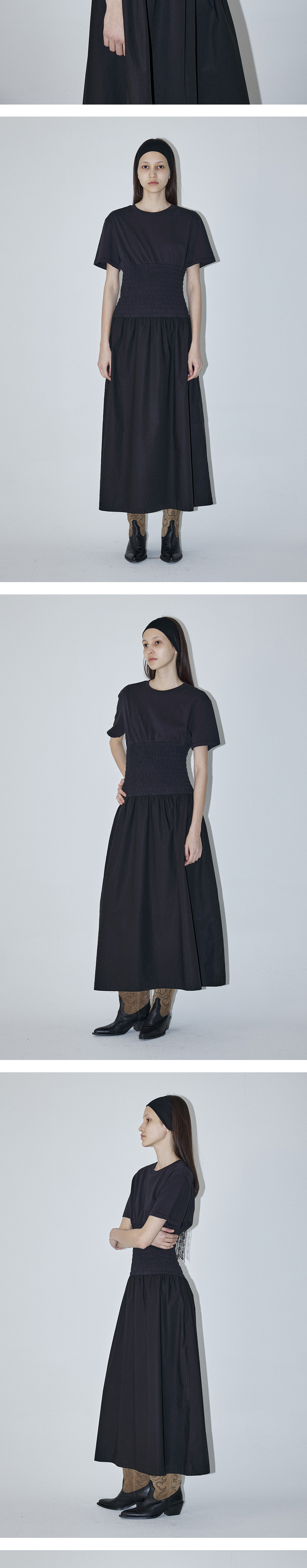 - 상의와 하의 소재가 다른 스모킹 원피스입니다. - 상의는 허리 전체에 스모킹 자수 디테일을 더해 페미닌한 실루엣은 물론, 하루 종일 편안한 착용감을 제공합니다 - 하의는 롱한 기장감의 플레어 스커트로 자연스럽게 흐르는 듯한 실루엣 연출이 가능합니다. - 상의는 여름에 착용하기 좋은 코튼 폴리 혼방 소재로 쾌적하게 착용 가능하고 하의는 60수 고밀도 면 바이오 원단을 사용하여 은은하게 워싱된 코튼이 매력적인 아이템입니다. - 단독으로도 완성도 높은 룩을 연출할 수 있어 휴가룩, 데일리룩 모두에 추천드리는 시즌 아이템입니다.