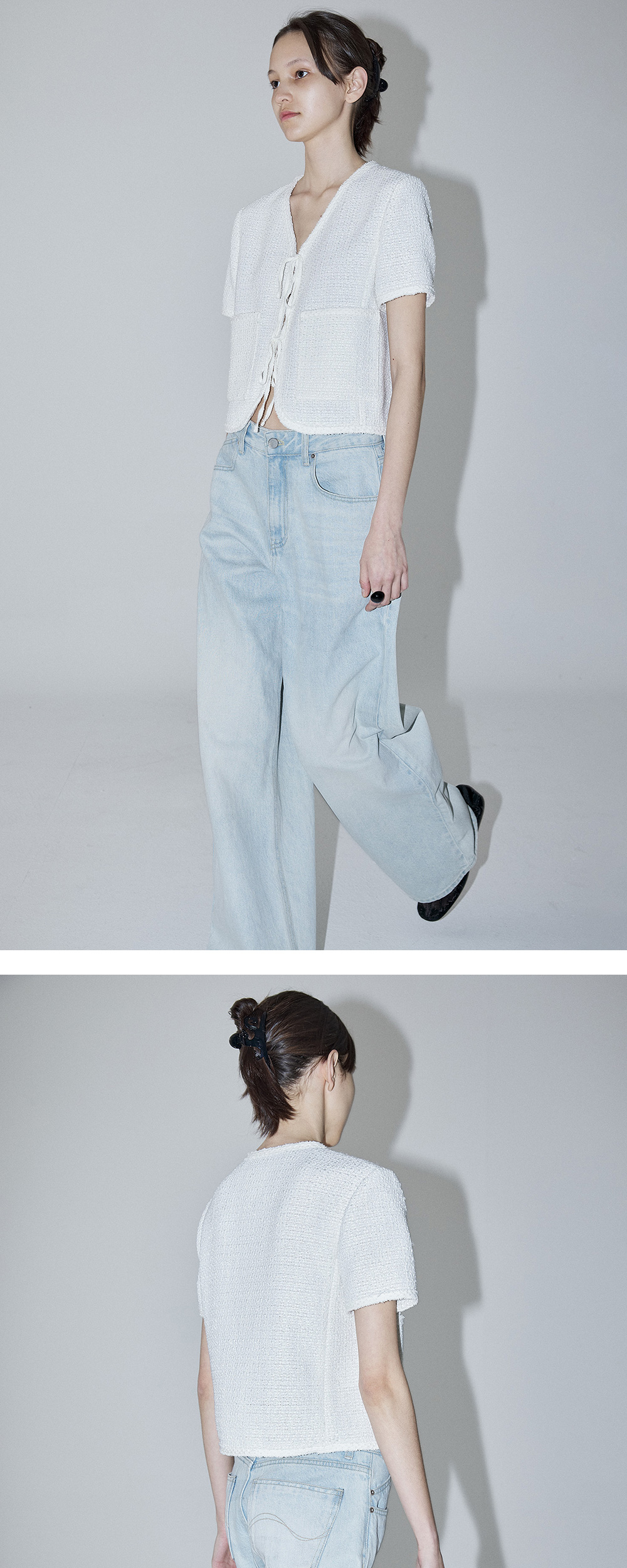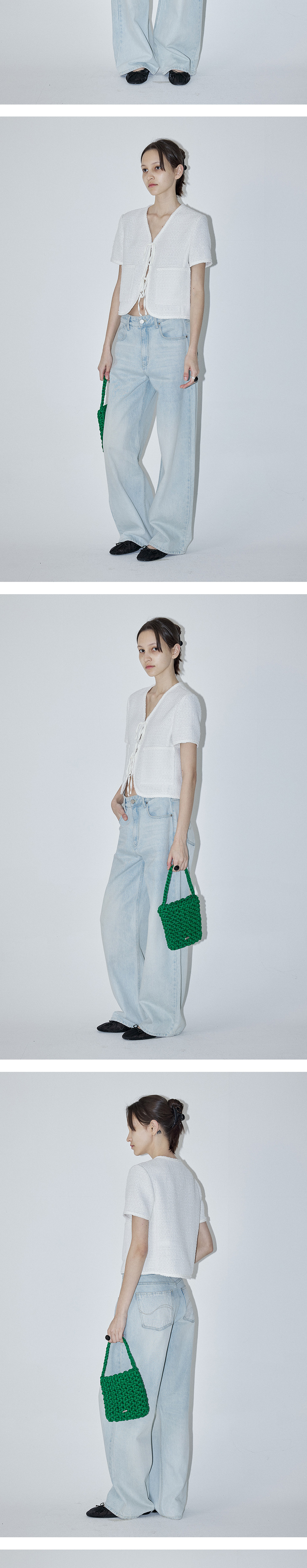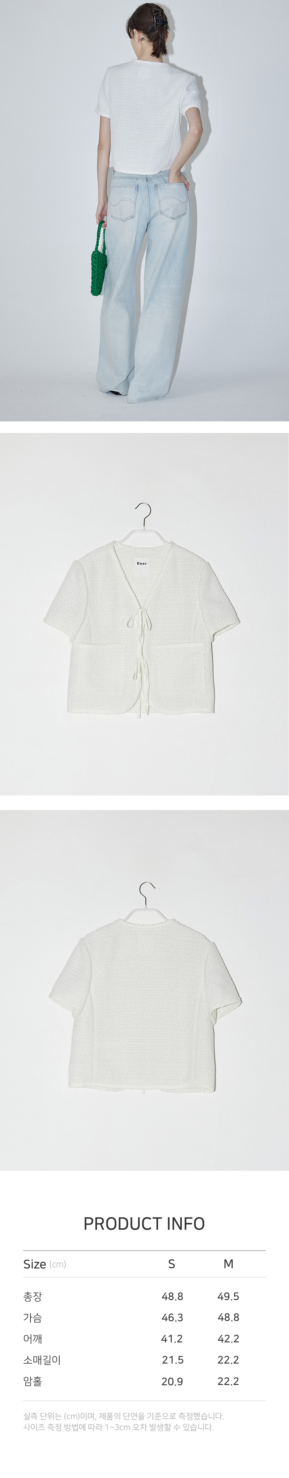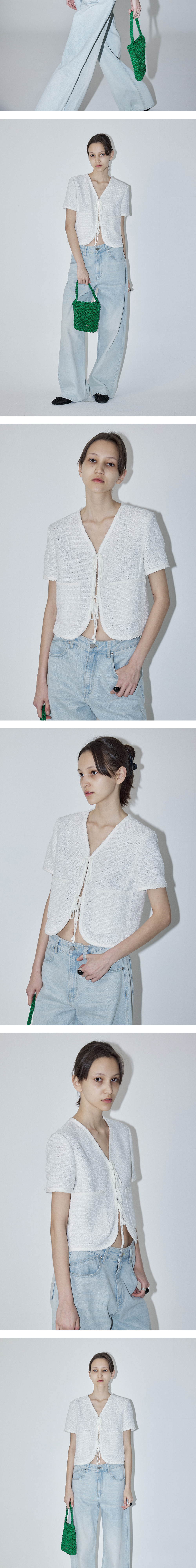 - 브이넥 디자인의 클래식하면서도 세련된 무드를 연출해주는 썸머 트위드 자켓입니다 - 앞단작 스트링 여밈으로 리본 연출이 가능하여 다양한 분위기로 스타일링이 가능합니다. - 구김이 적고 가벼운 썸머 트위드 소재로 여름 시즌에도 부담 없이 착용 가능하며 포켓을 더해 실용성도 놓치지 않은 아이템입니다. - 넥라인부터 밑단,소매까지 트리밍 트위드 테이프로 은은한 고급스러운 느낌을 연출합니다. - 전체적으로 슬림한 핏으로 제작되어 여유 있는 착용감을 원하시는 분들께는 한 사이즈 업 하시는 것을 권장드립니다.