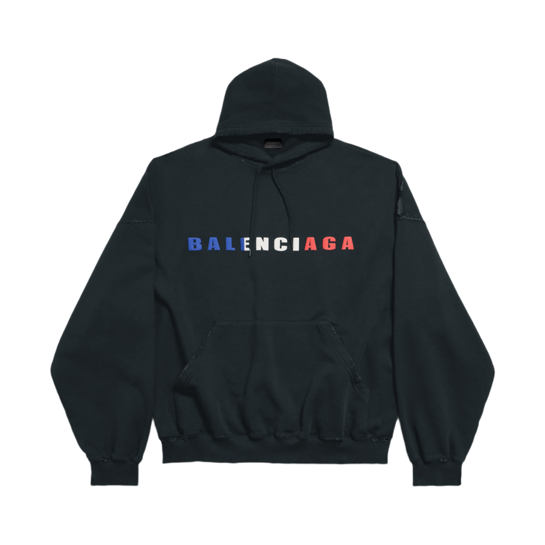 발렌시아가 인터내셔널 후드 라지 핏 페이디드 블랙